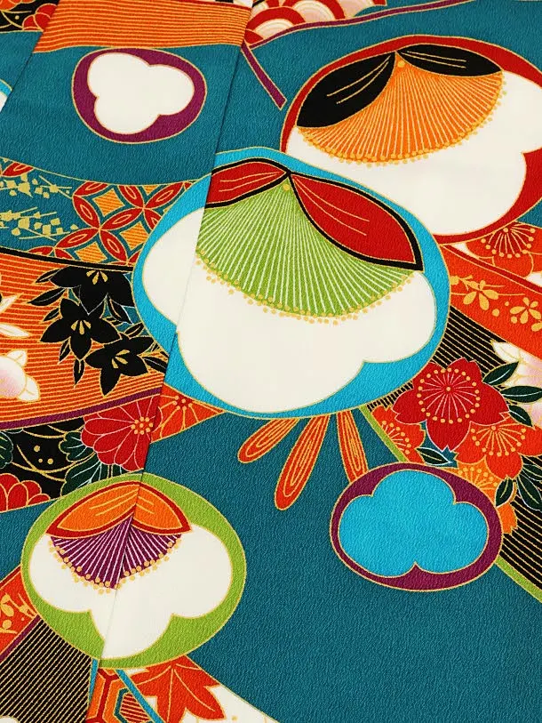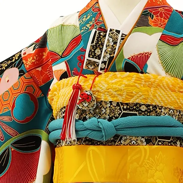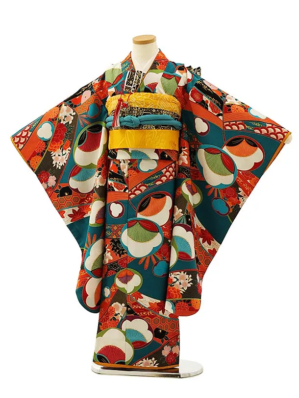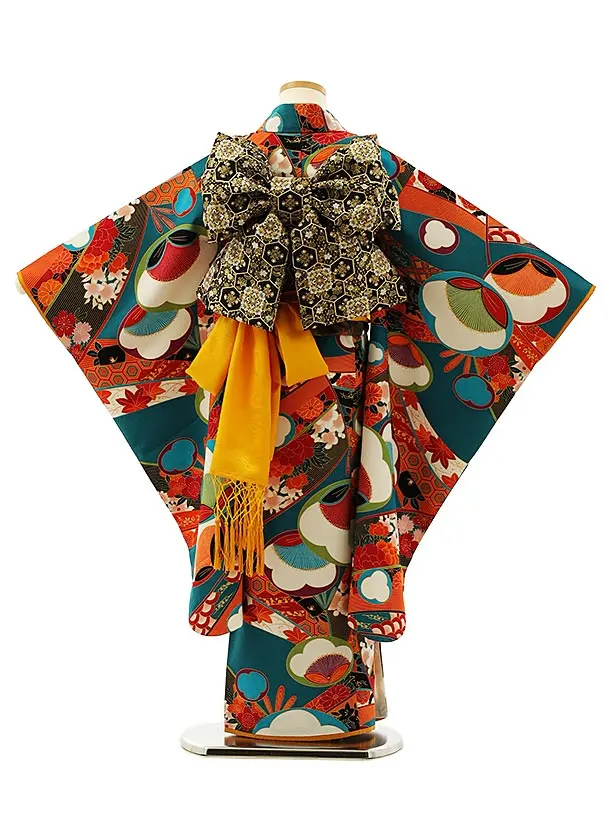 七五三レンタル(7歳結び帯)Y021 ターコイズ 熨斗に梅