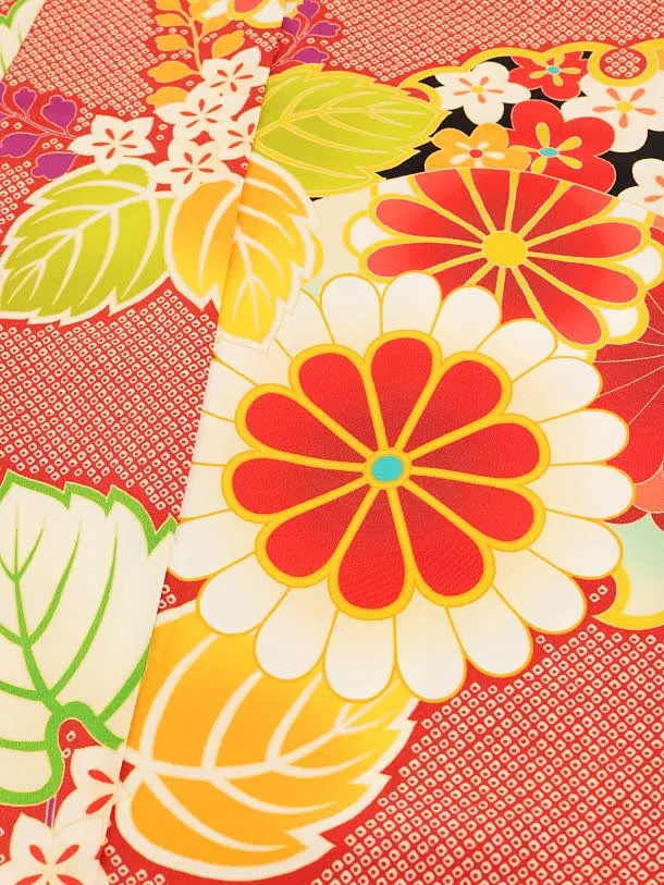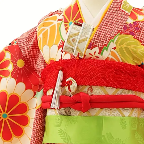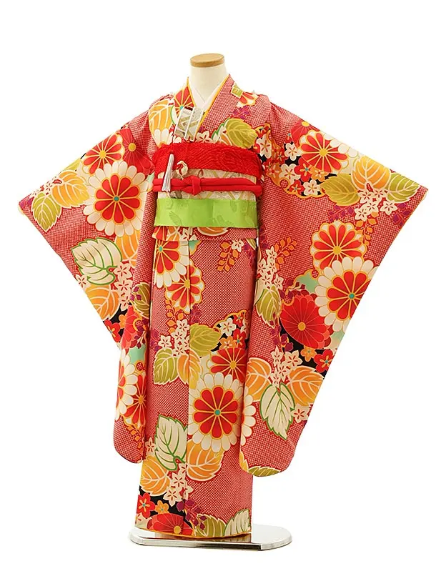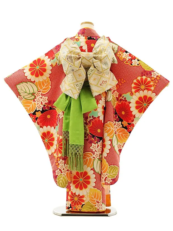 七五三レンタル(7歳結び帯)Y025 赤地疋田柄 菊桐
