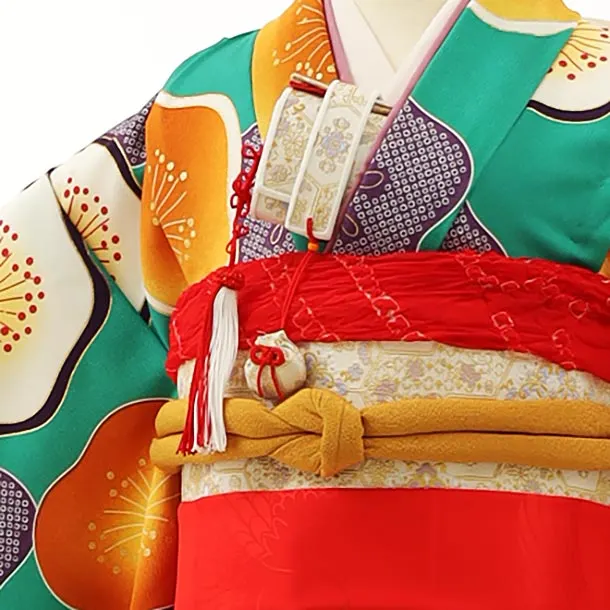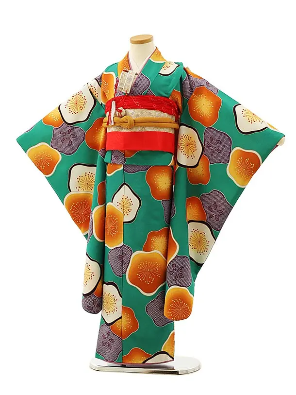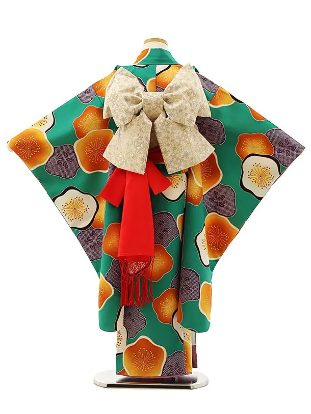 七五三レンタル(7歳結び帯)Y029 グリーン地 梅