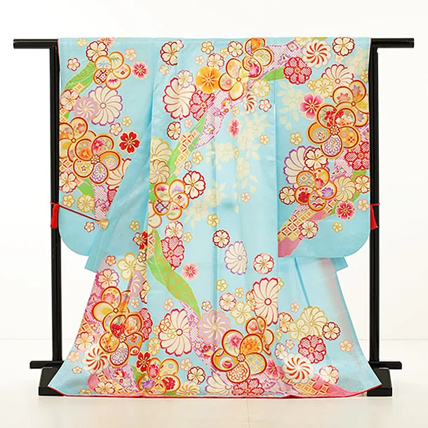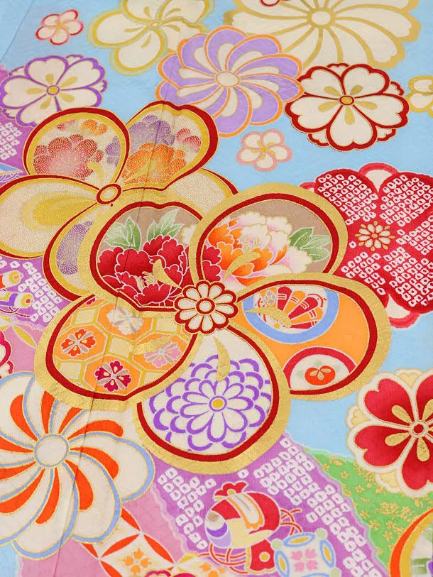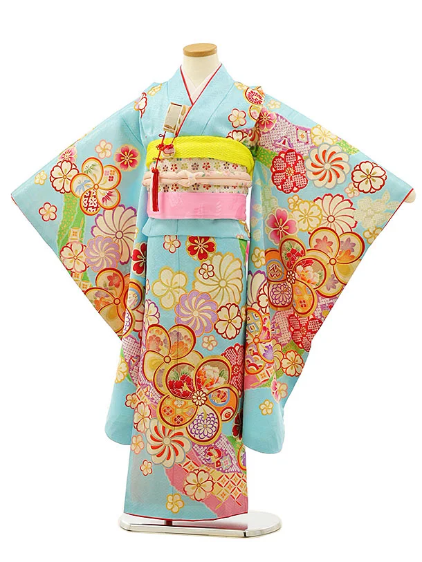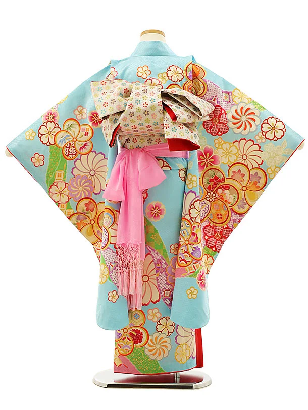 七五三レンタル(7歳女の子袋帯)Y033【正絹】水色ねじり花