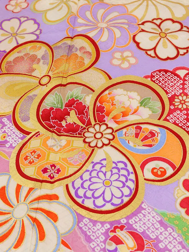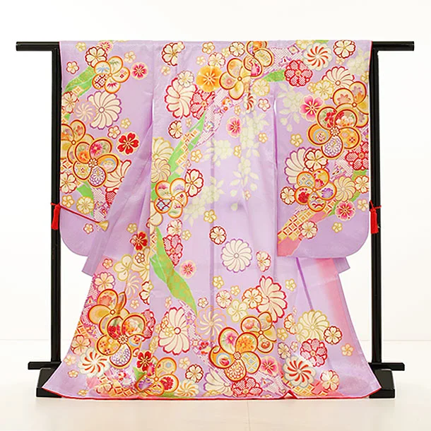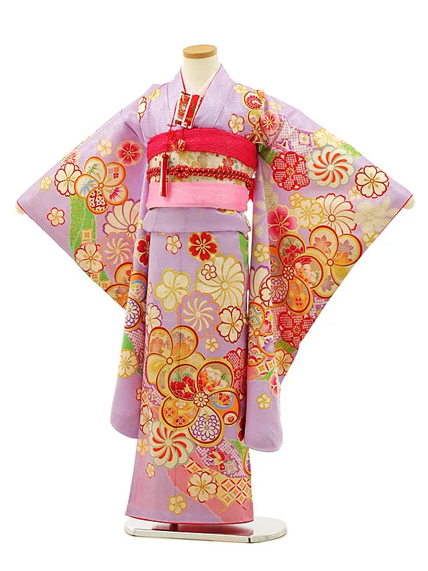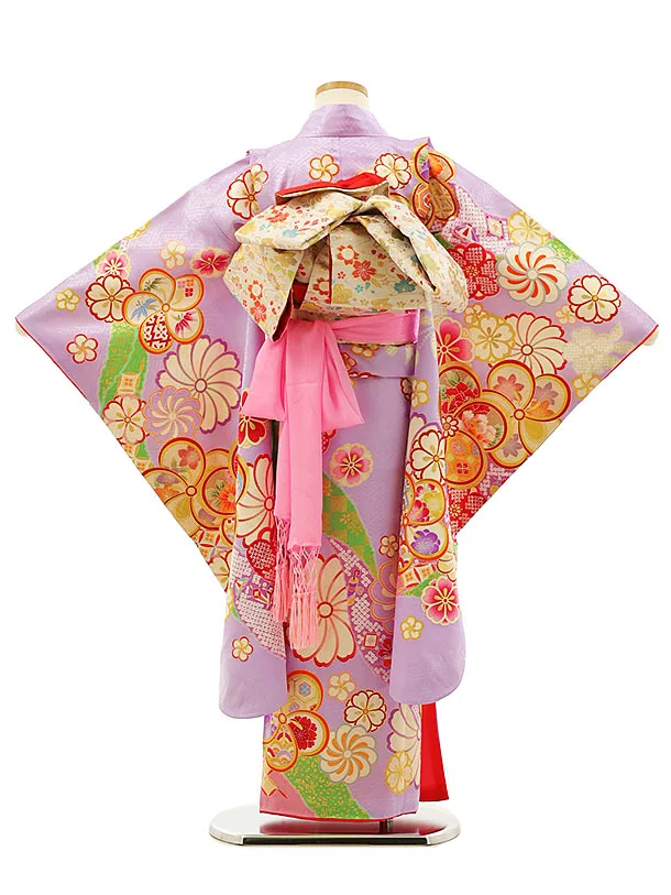 七五三レンタル(7歳女の子袋帯)Y034【正絹】パープルねじり花