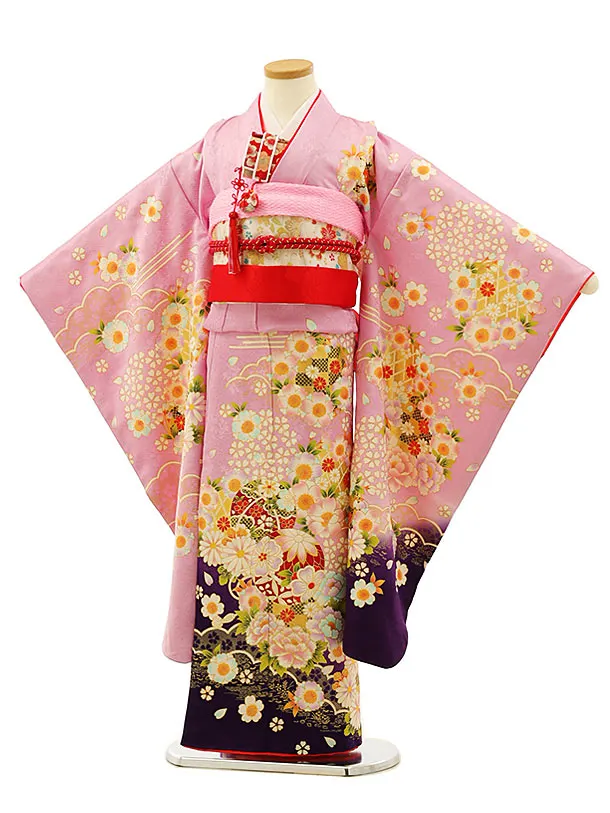 七五三レンタル(7歳女の子袋帯)Y037【正絹】薄パープル裾紫
