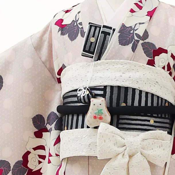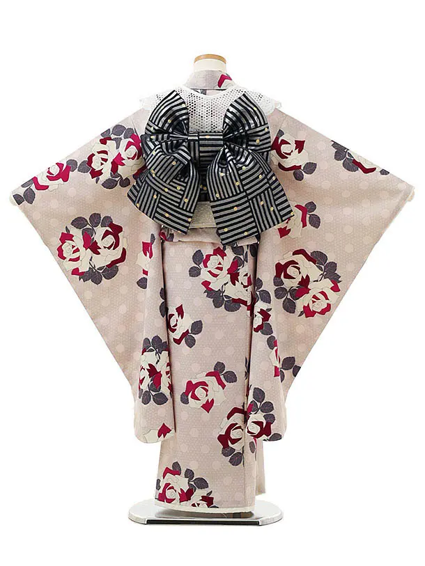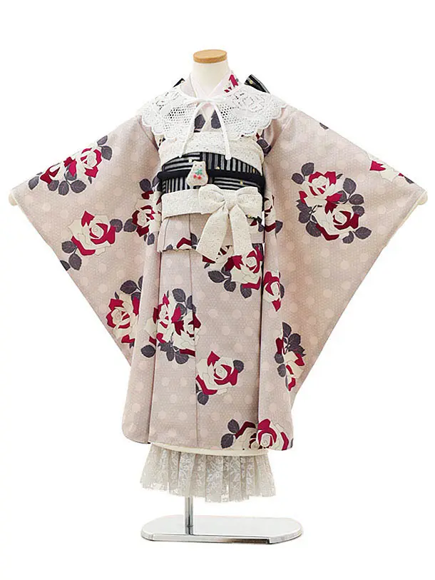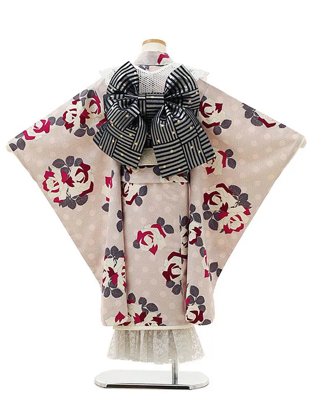 七五三(7歳結び帯)Y041 シュセット ピンクベージュドット薔薇