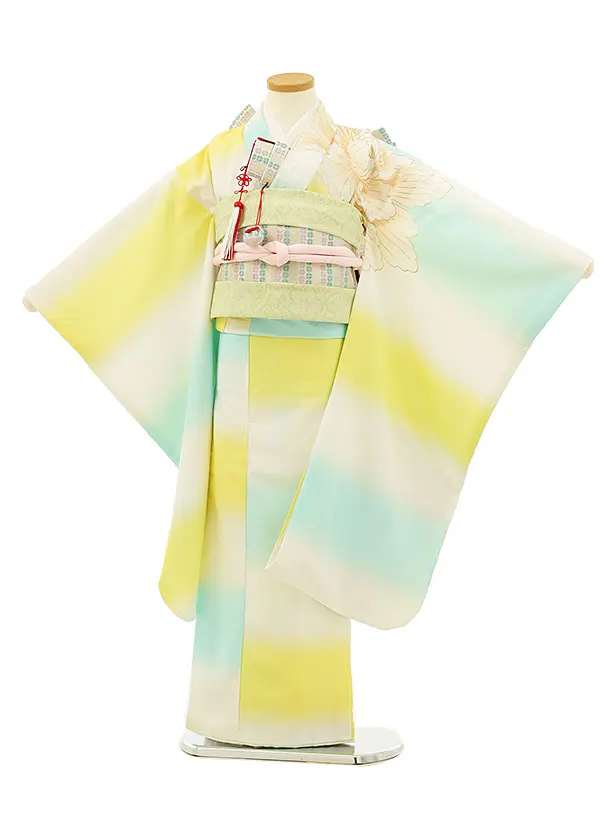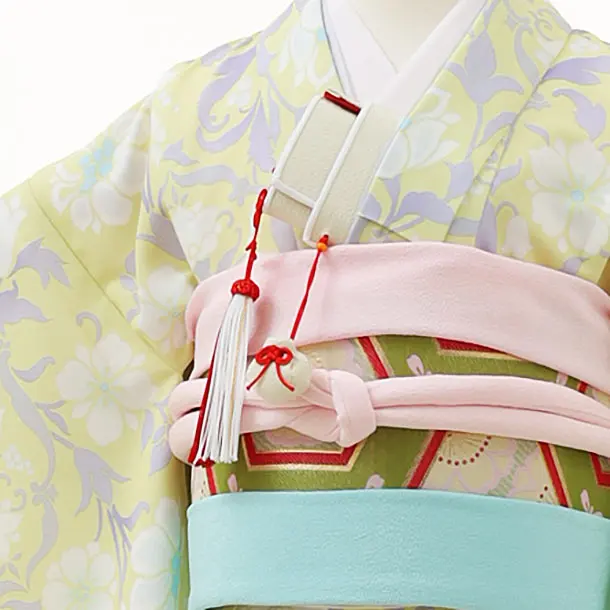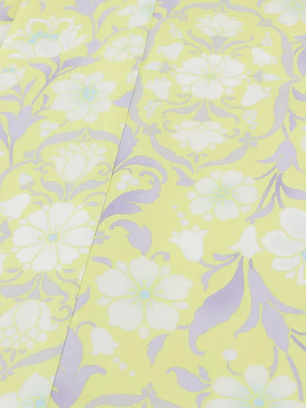 七五三レンタル(7歳女結び帯)Y045 ライトイエロー ダマスク柄