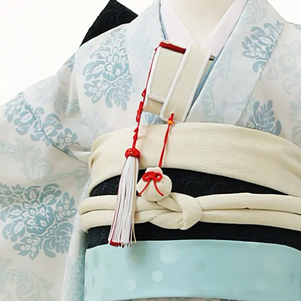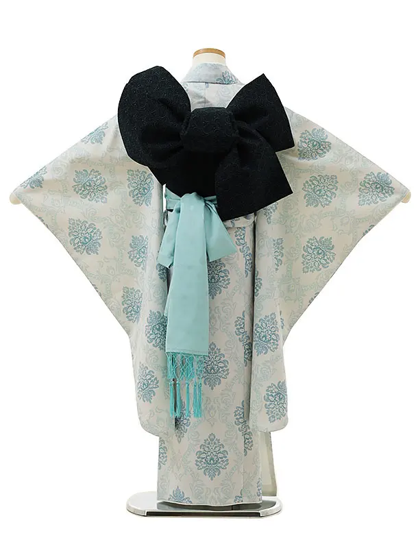 七五三レンタル(7歳女結び帯)Y049 白地 ブルーダマスク柄