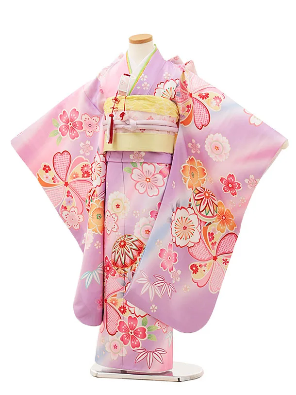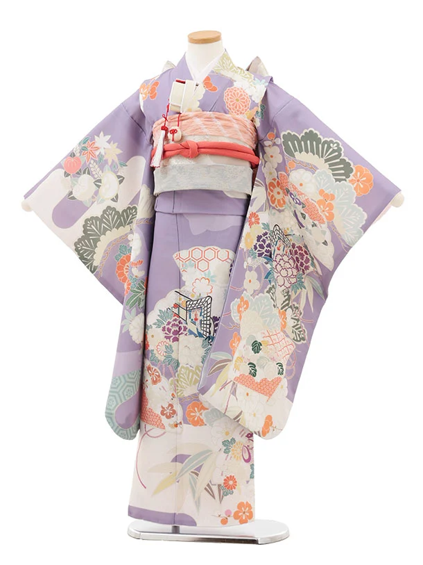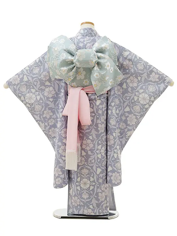 七五三レンタル(7歳女結び帯)Y051 グレーパープル ダマスク柄