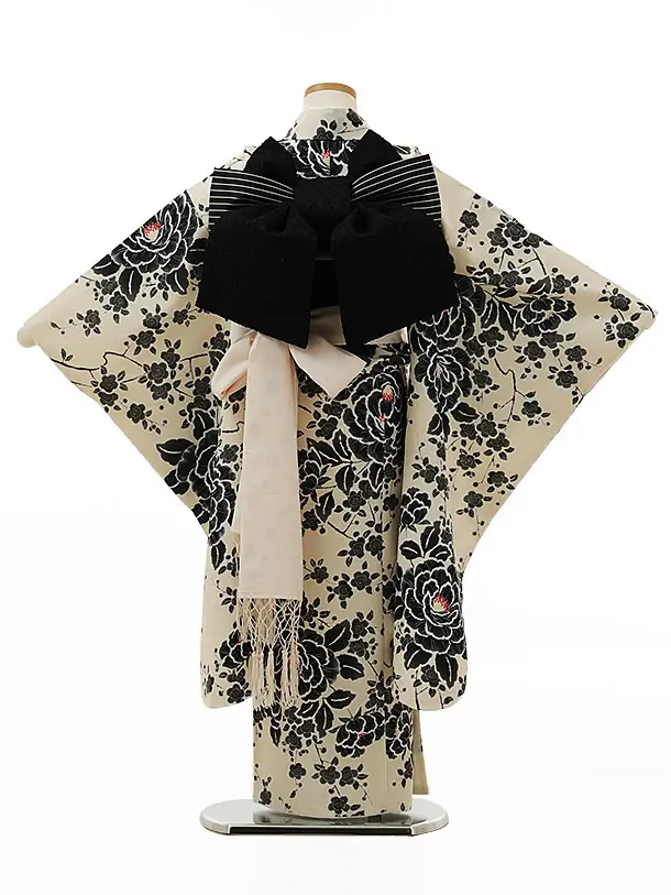 七五三レンタル(7歳女結び帯)Y052 クリーム地 牡丹