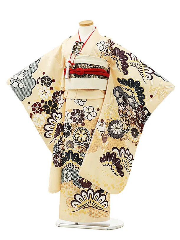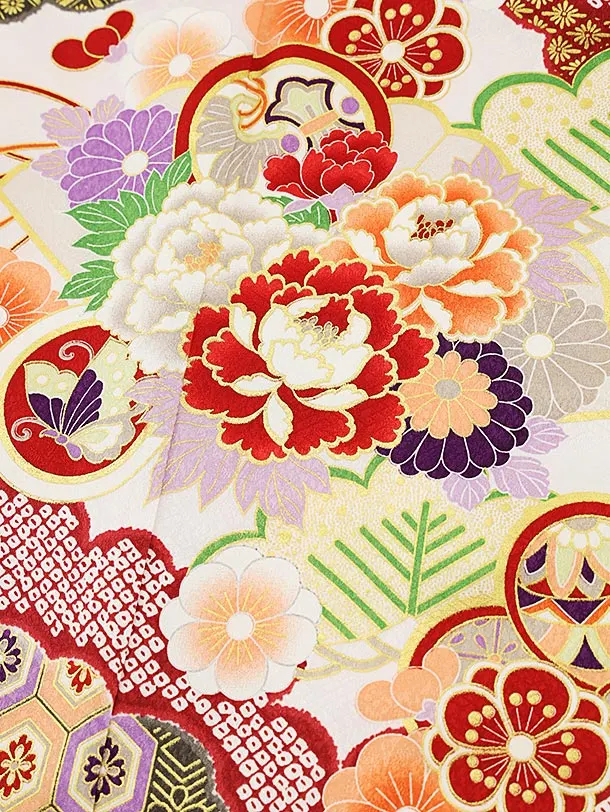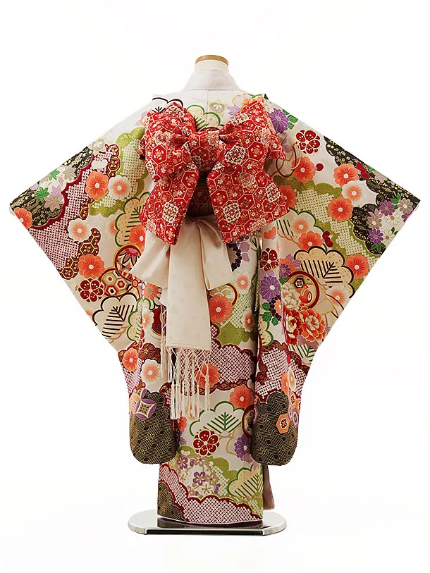 七五三レンタル(7歳女結び帯)Y059 白地 雲取り牡丹