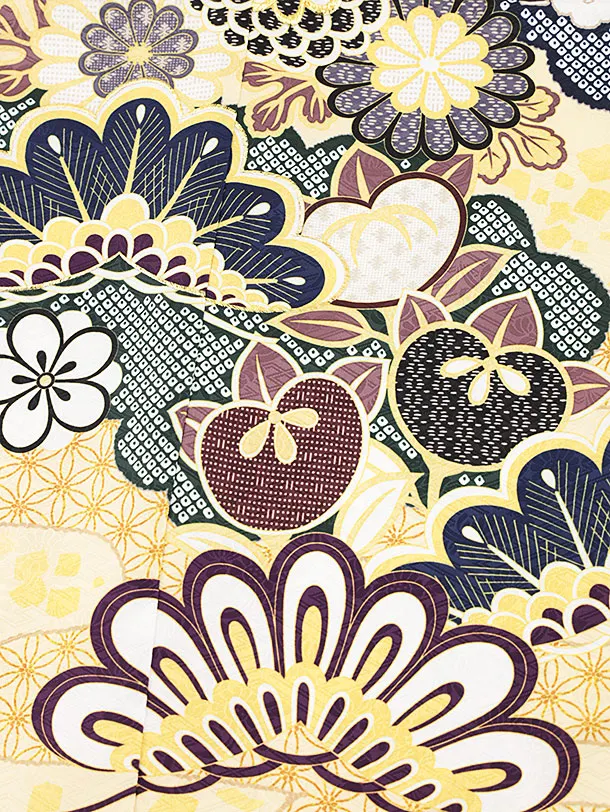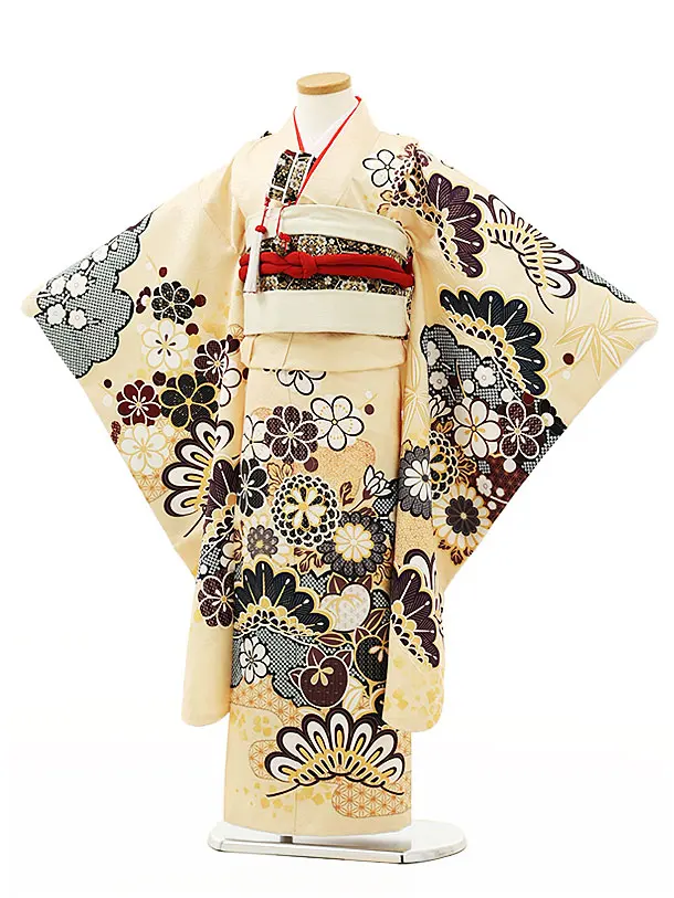 七五三レンタル(7歳女結び帯)Y069 クリーム地 菊に松竹梅