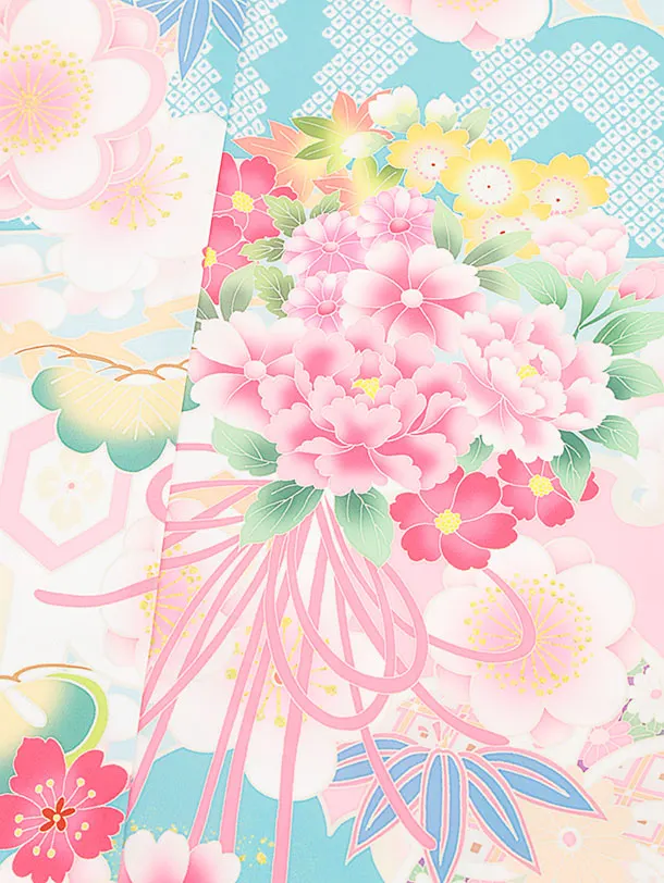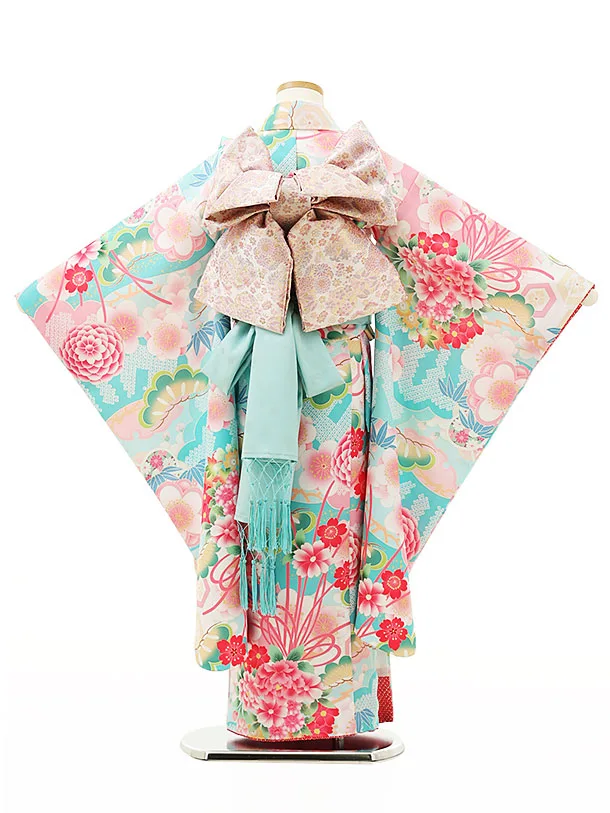 七五三レンタル(7歳女結び帯)Y076 式部浪漫 水色地薬玉