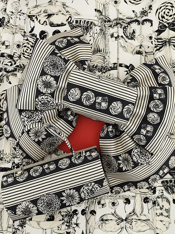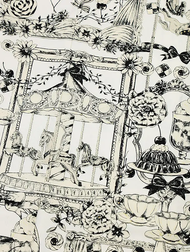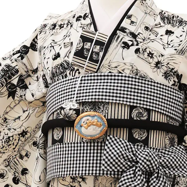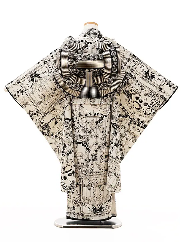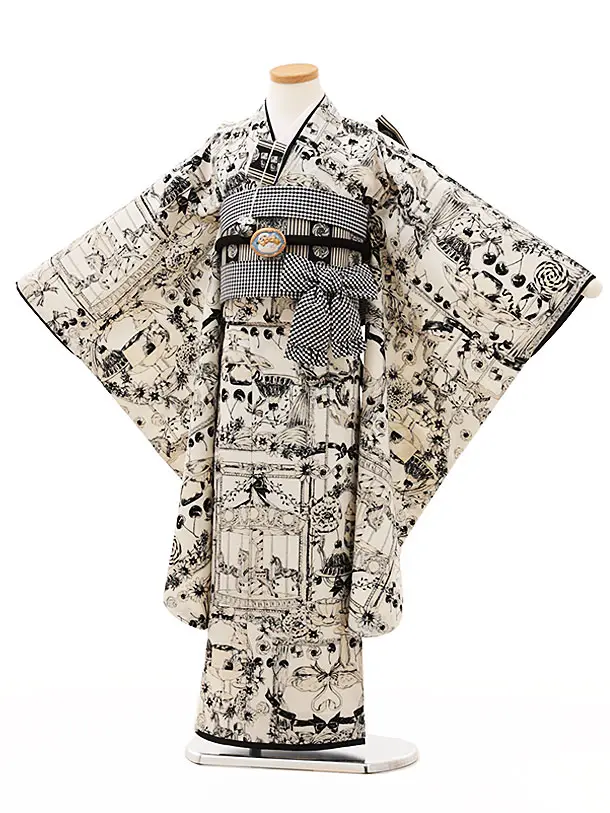 七五三(7歳結び帯)Y092 シュセット 白黒メリーゴランド