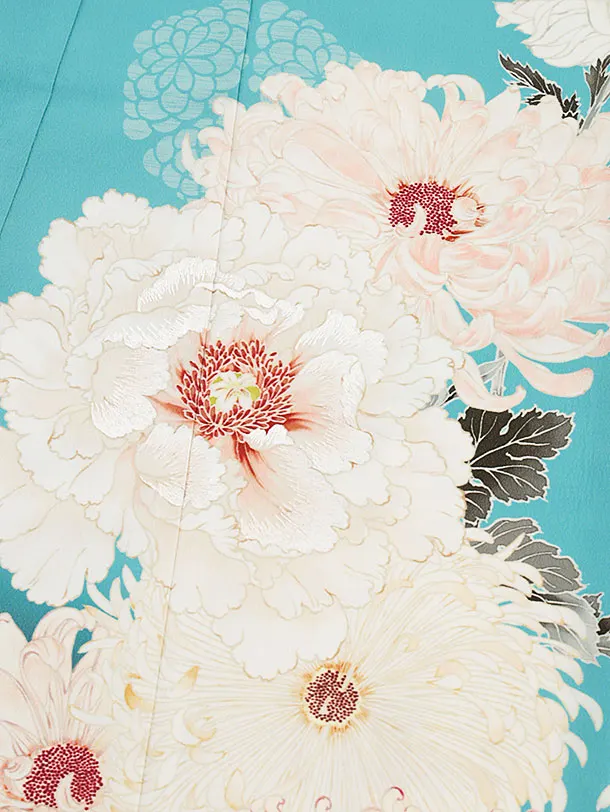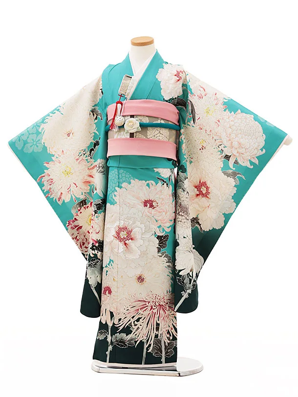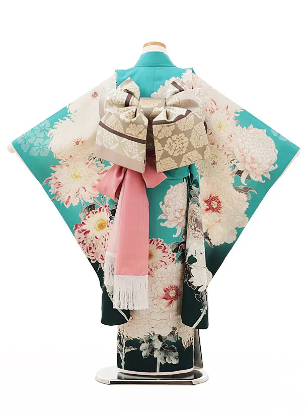 七五三(7歳結び帯)Y093 UNSODO ターコイズ 契花百菊