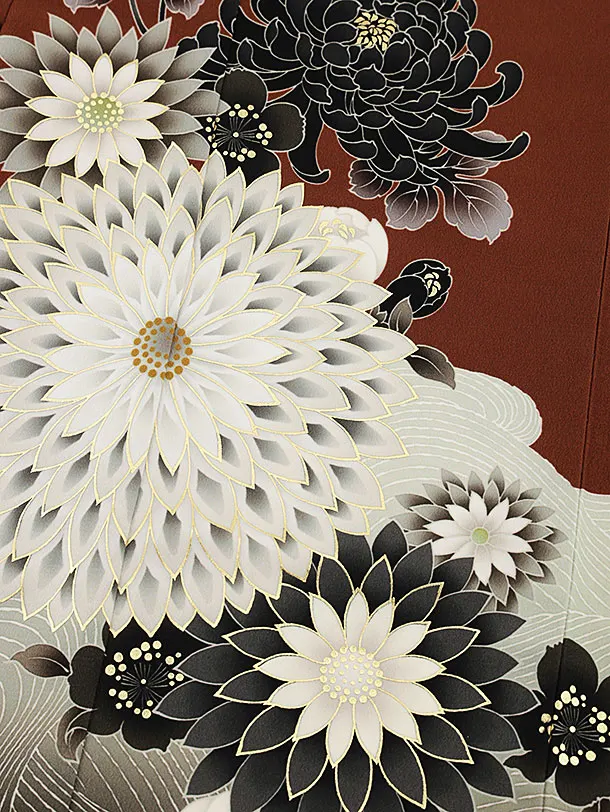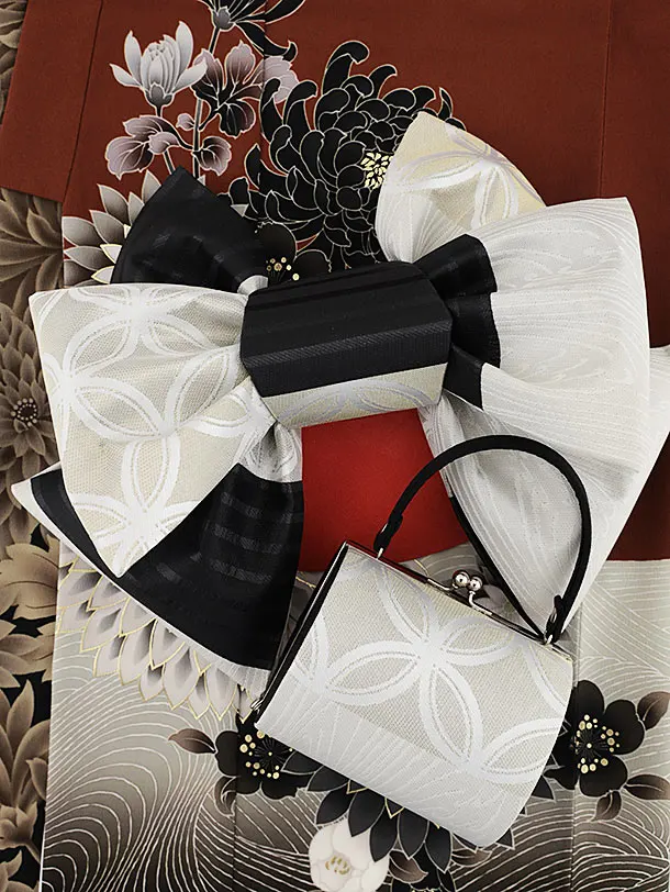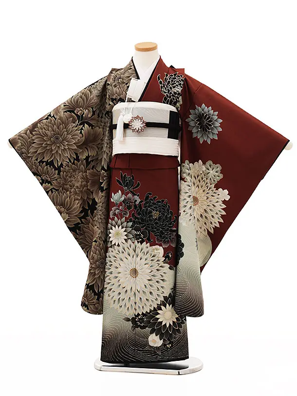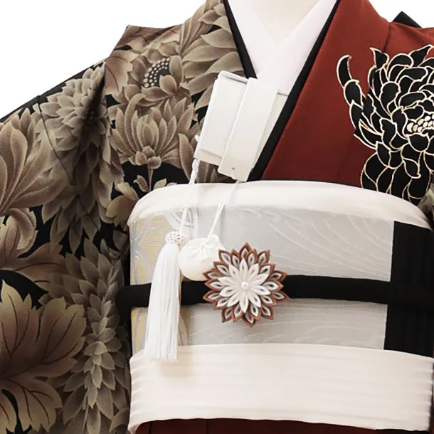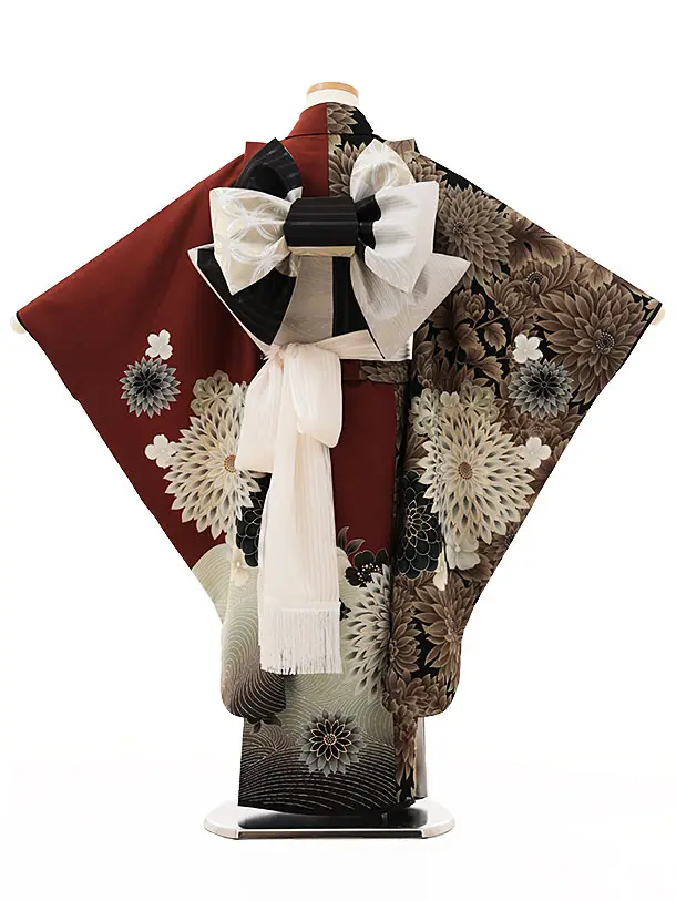 七五三(7歳結び帯)Y098 JAPAN STYLE 茶片身替わり菊