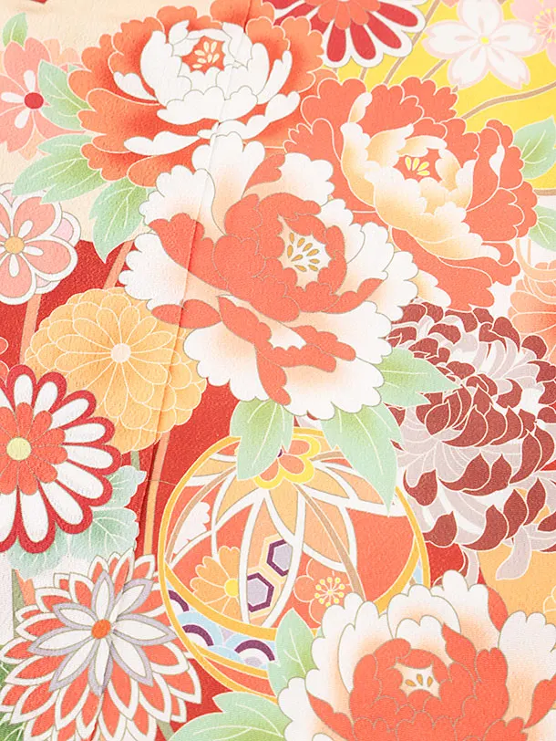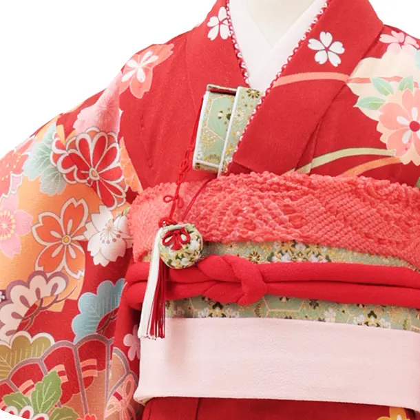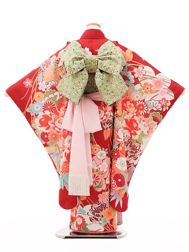 七五三レンタル(7歳女結び帯)Y101 赤色 まり花づくし