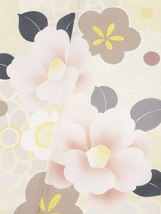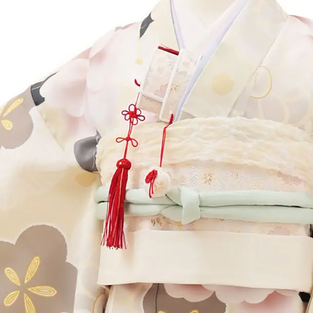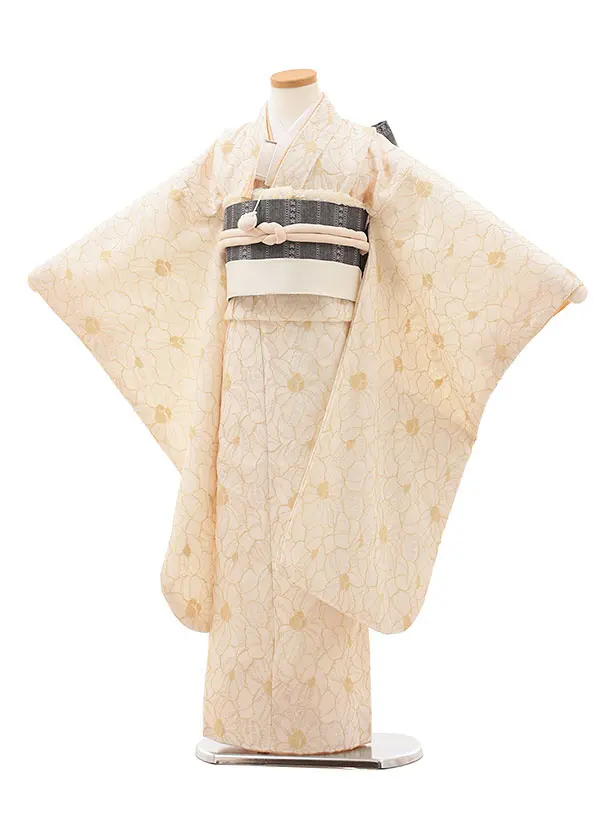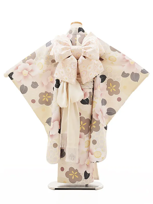 七五三レンタル(7歳女結び帯)Y105 クリーム色 椿