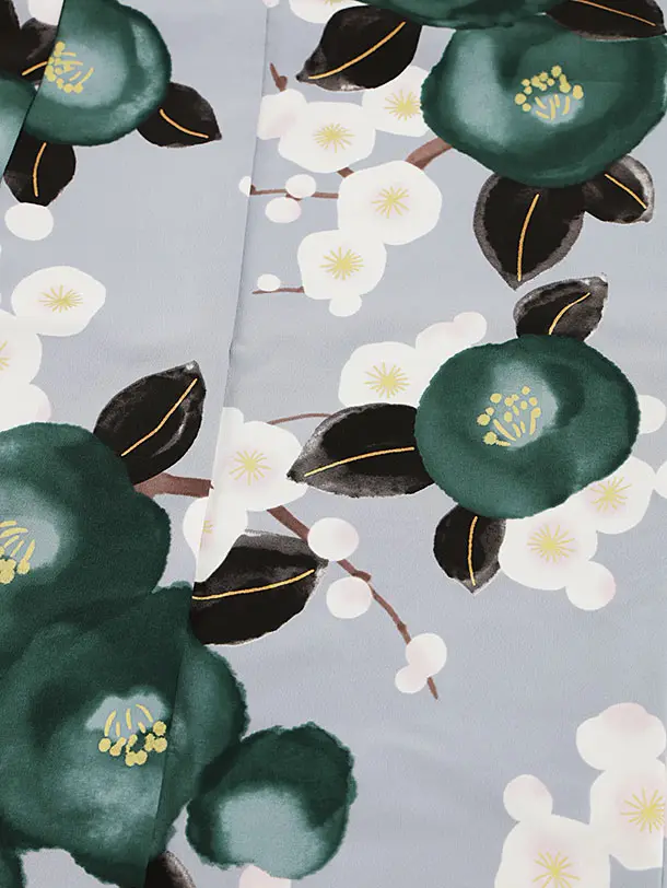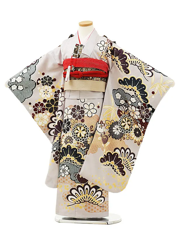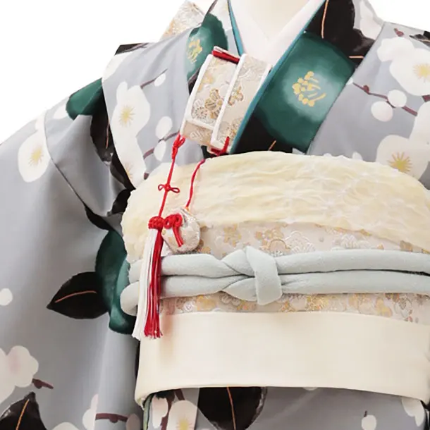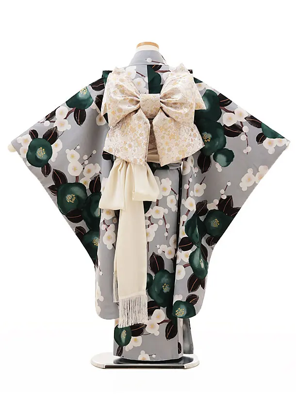 七五三レンタル(7歳女結び帯)Y116 グレー地 梅に椿