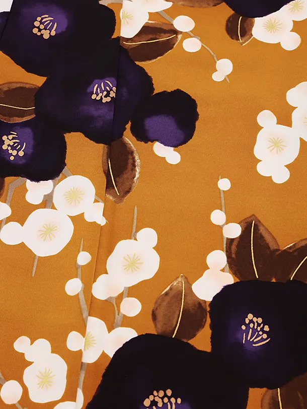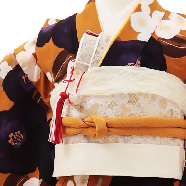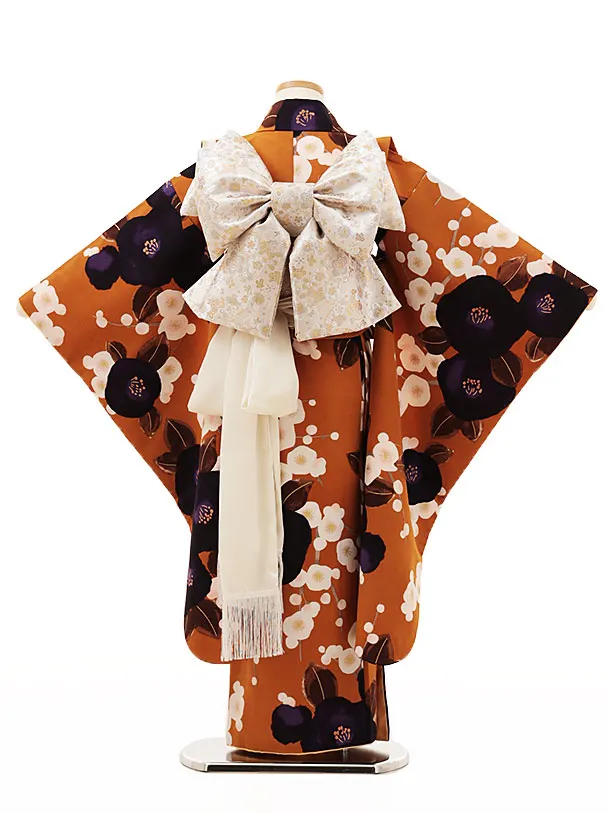 七五三レンタル(7歳女結び帯)Y117 金茶色 梅に椿