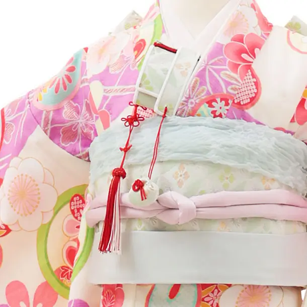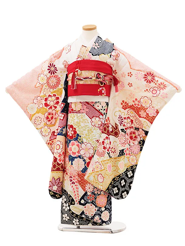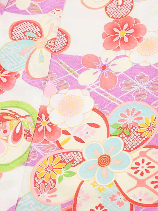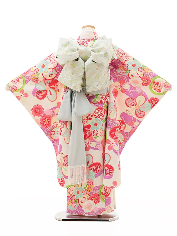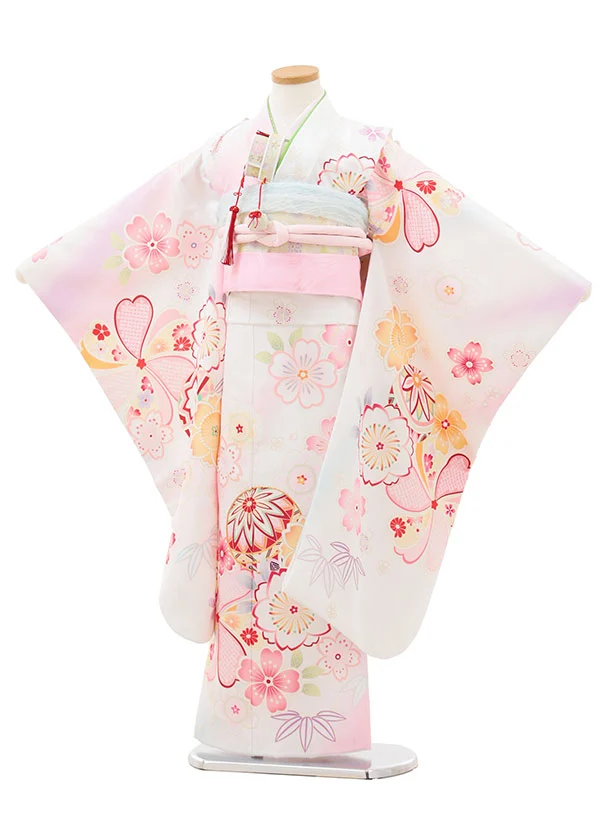 七五三レンタル(7歳女結び帯)Y125 白地 紫 ねじり梅