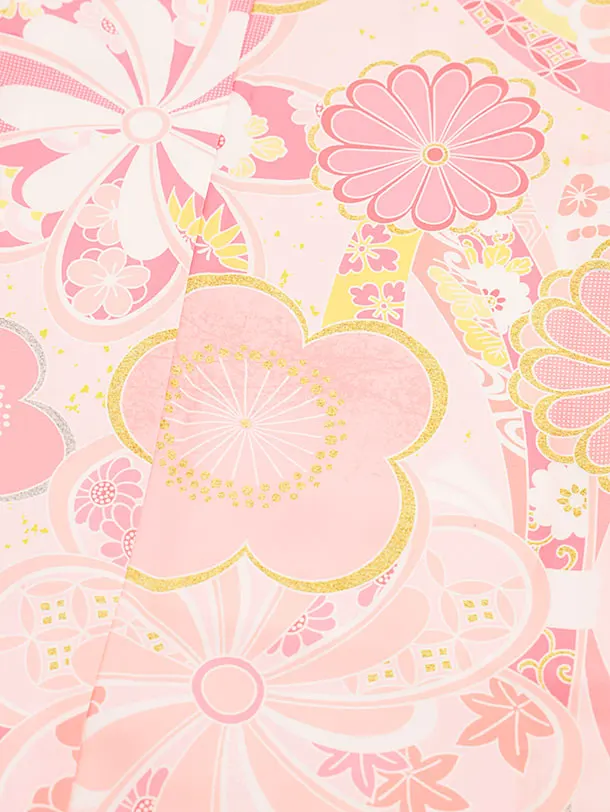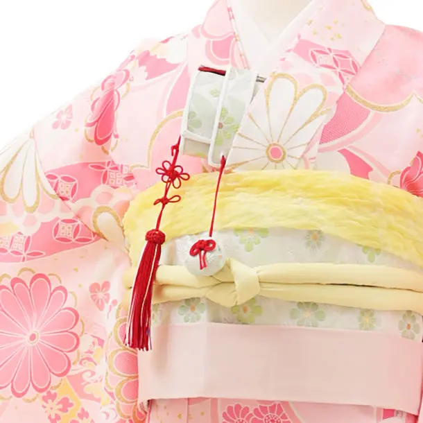 七五三レンタル(7歳女結び帯)Y132 ピンク 梅 ねじり菊