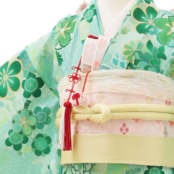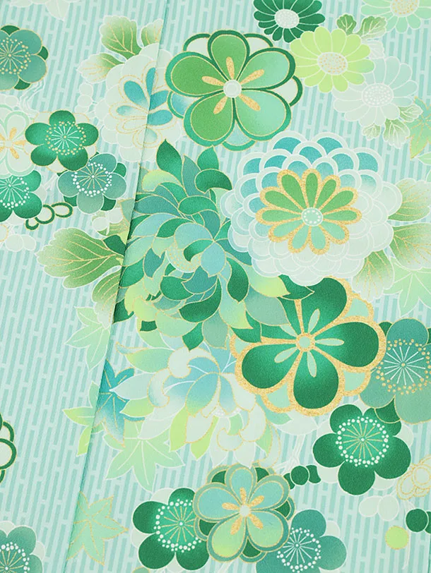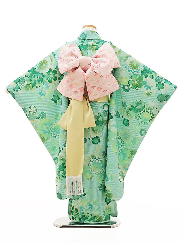 七五三レンタル(7歳女結び帯)Y133 グリーンストライプ 菊梅