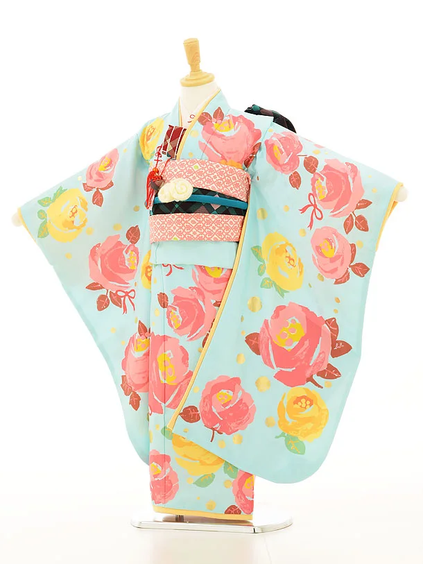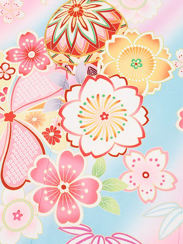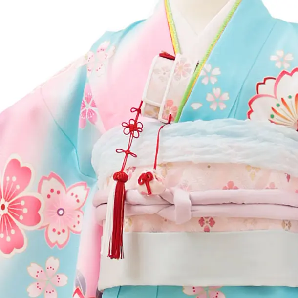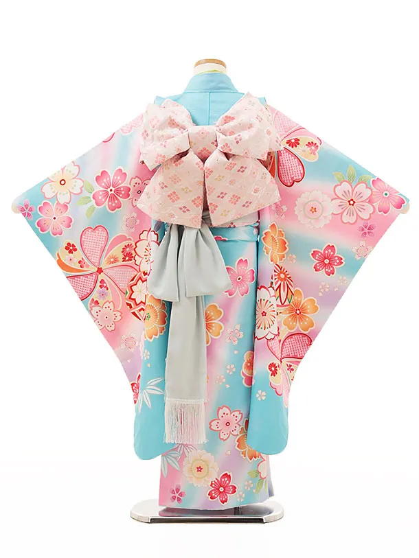 七五三レンタル(7歳女結び帯)Y134 水色 まり桜