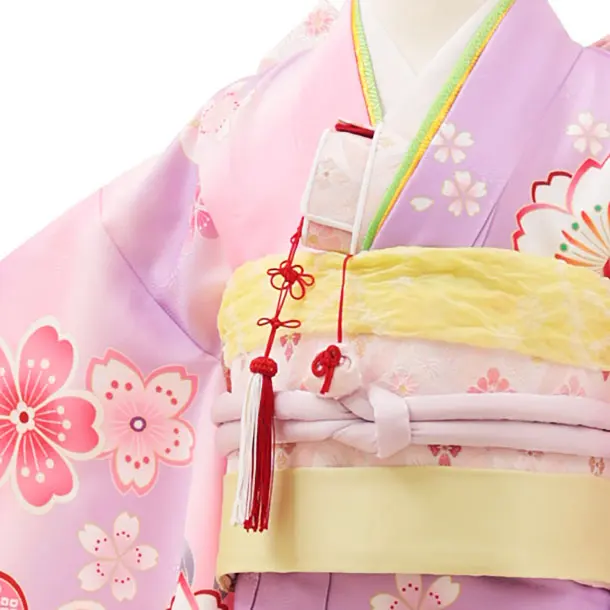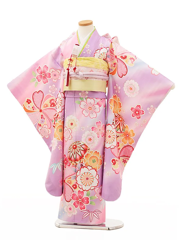 七五三レンタル(7歳女結び帯)Y135 パープル まり桜
