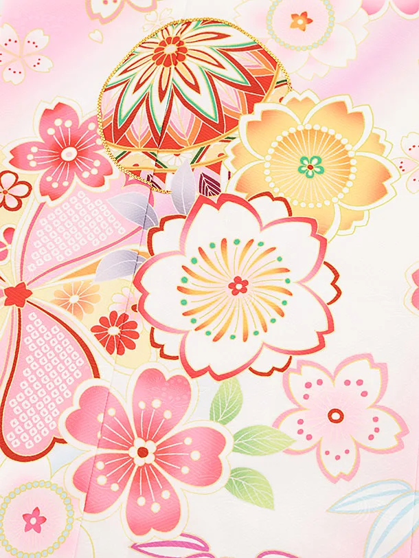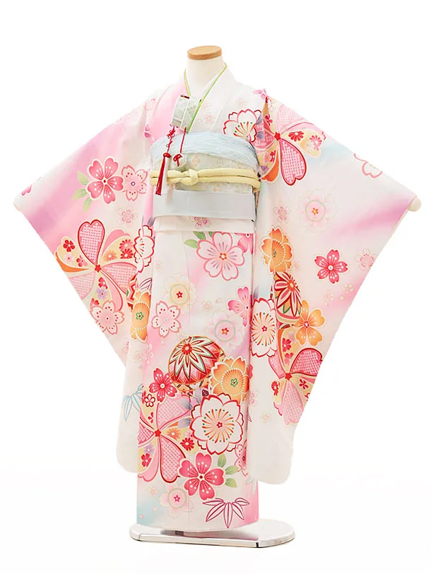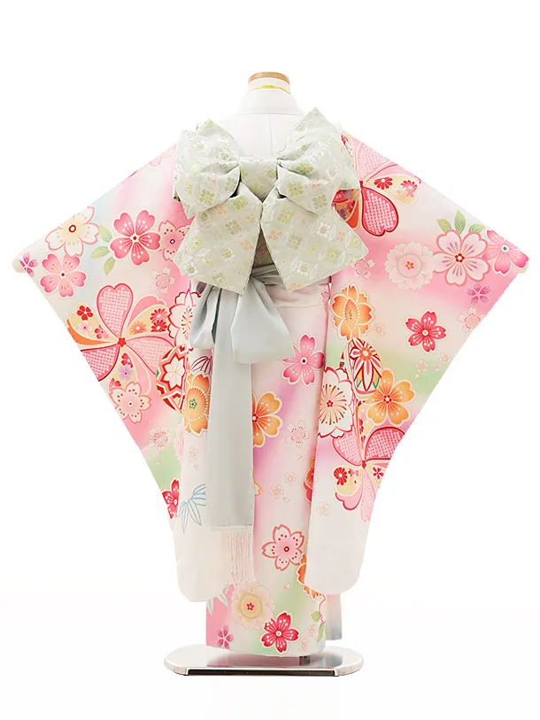 七五三レンタル(7歳女結び帯)Y136 白地 まり桜