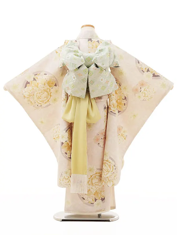 七五三レンタル(7歳女結び帯)Y142 うすピンク 丸に牡丹