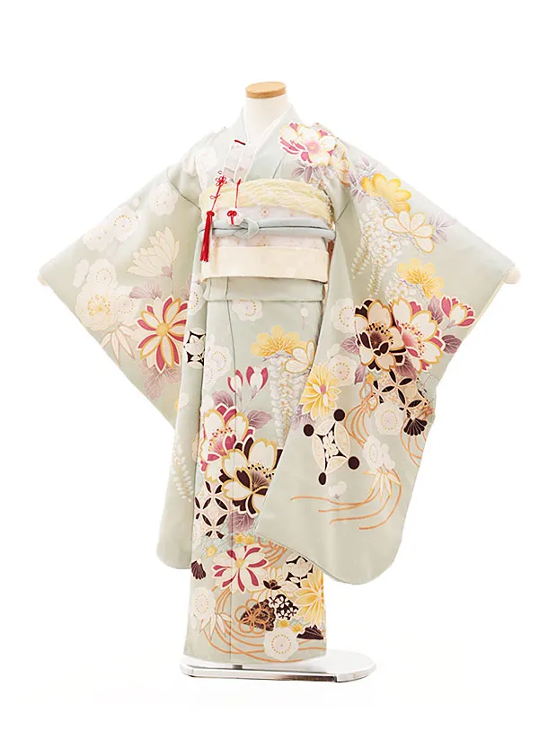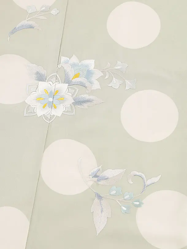 七五三レンタル(7歳女結び帯)Y146 ミントグリーンドット 刺繍唐花