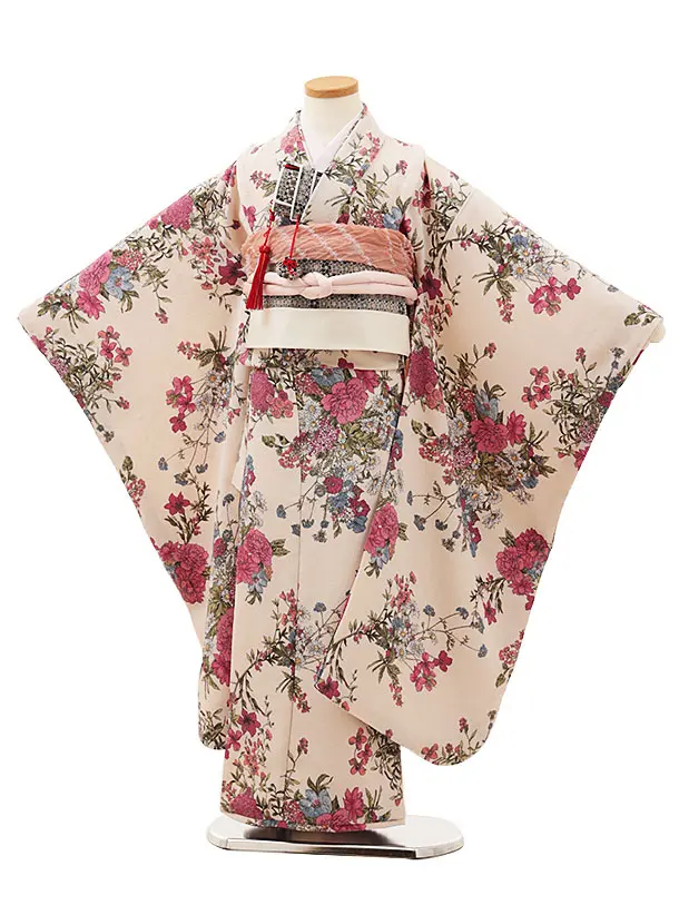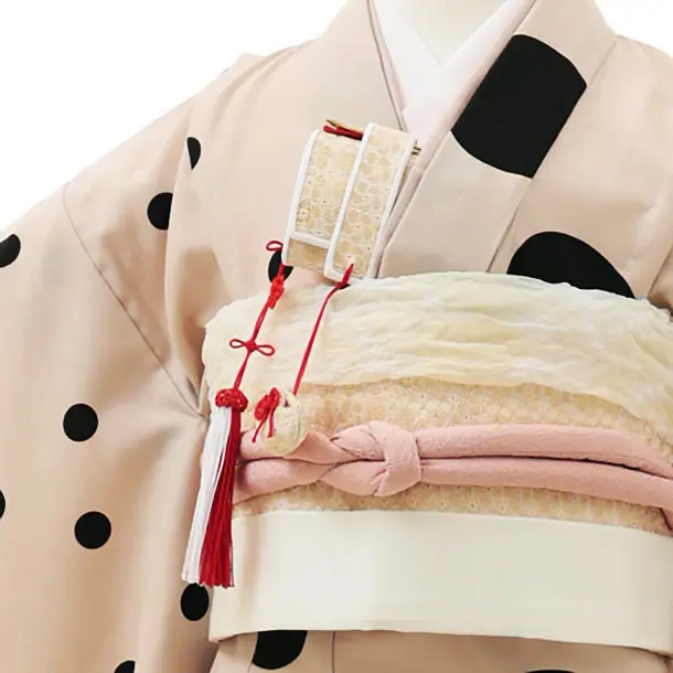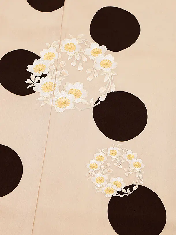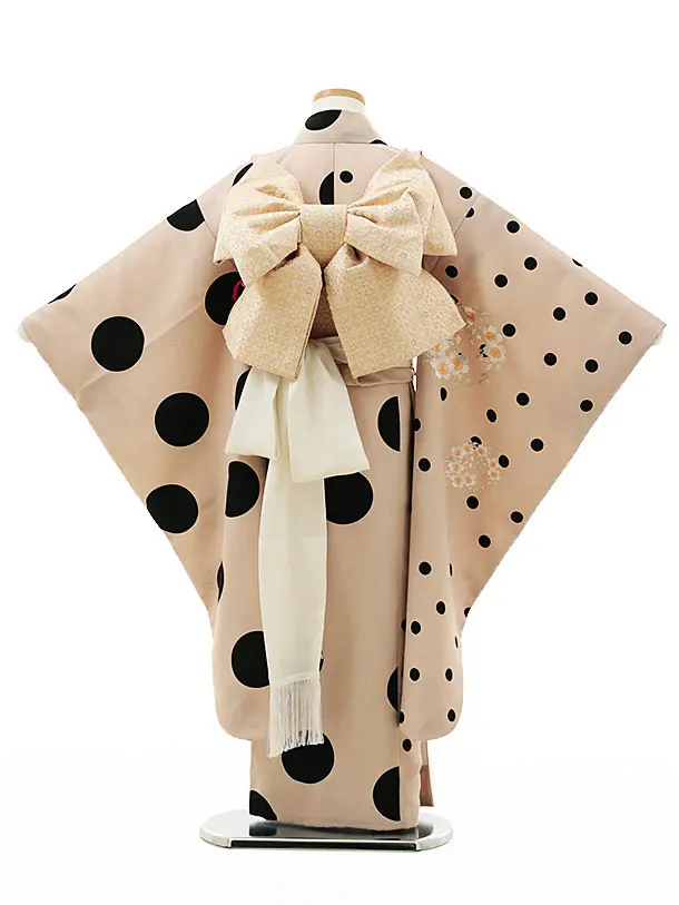 七五三レンタル(7歳女結び帯)Y149 ベージュドット 刺繍桜