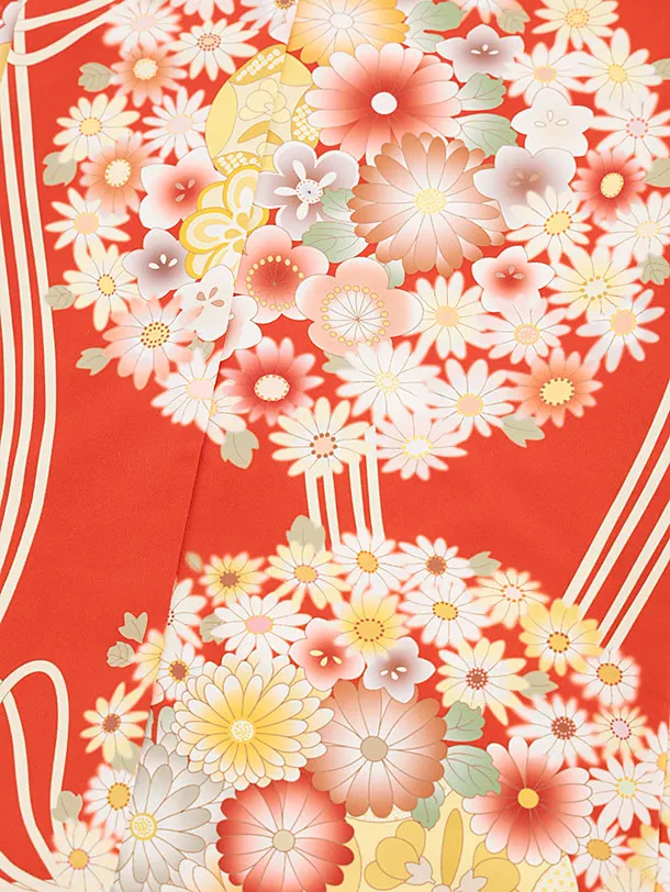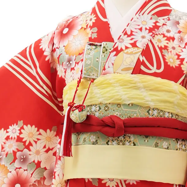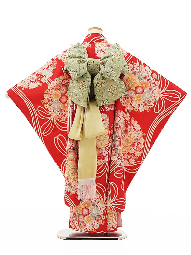 七五三レンタル(7歳女結び帯)Y156 赤地 薬玉
