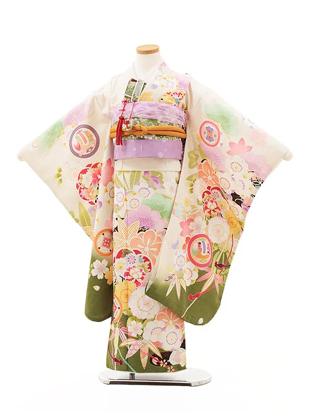 七五三レンタル(7歳女結び帯)Y161 アイボリー 小花