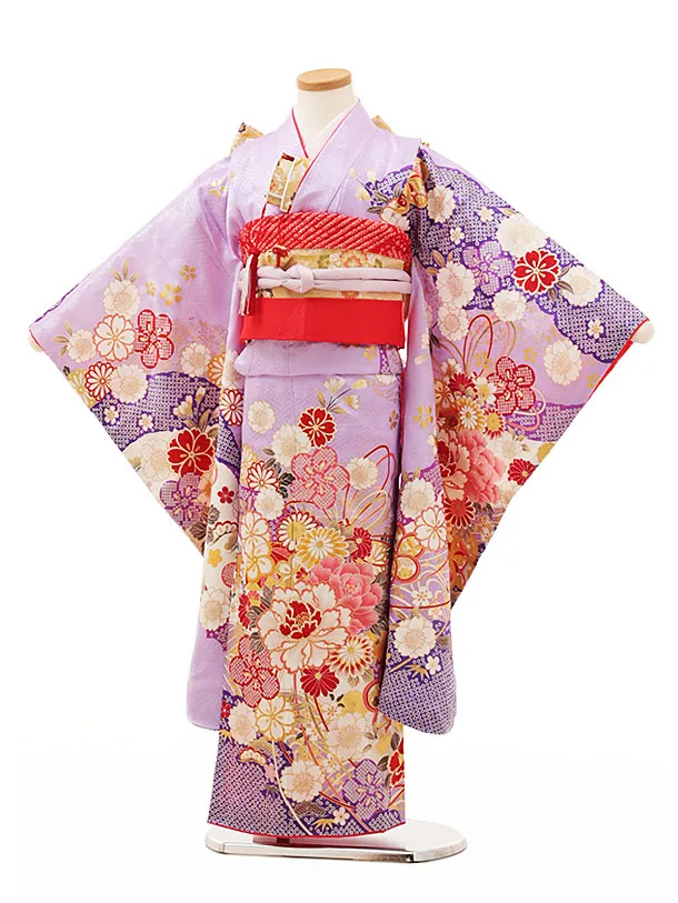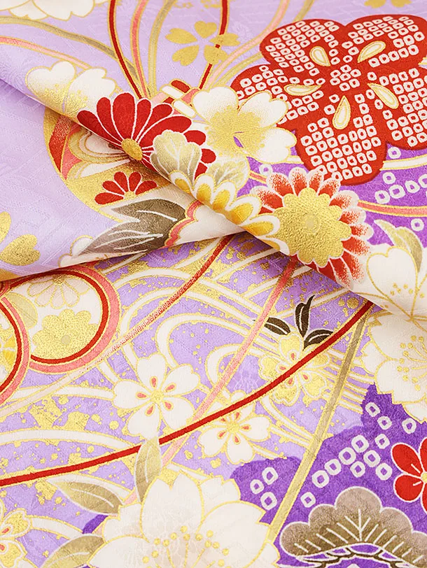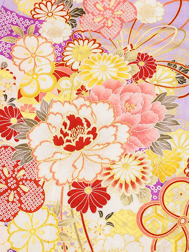 七五三(7歳結び帯)Y172【正絹】藤色 花づくし