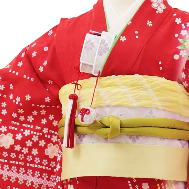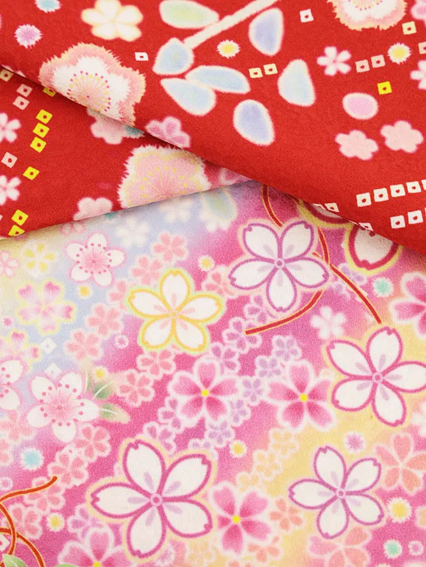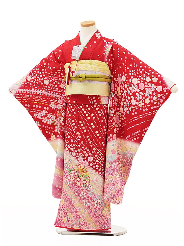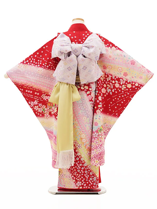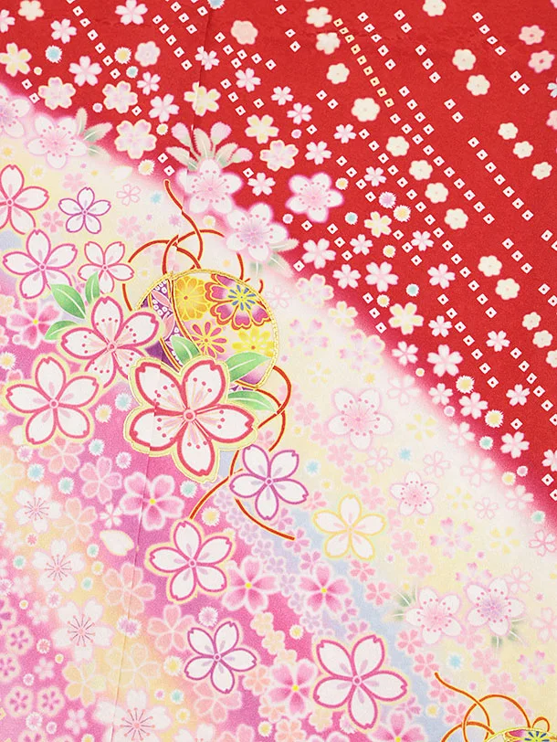 七五三(7歳結び帯)Y174【正絹】赤地 桜尽し