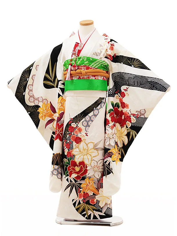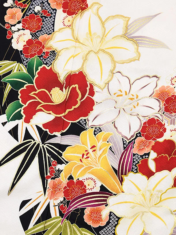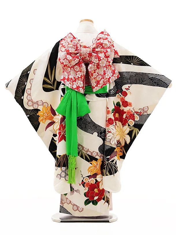 七五三(7歳結び帯)Y184【正絹】白地 百合八重桜