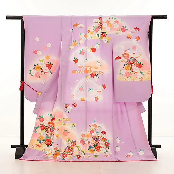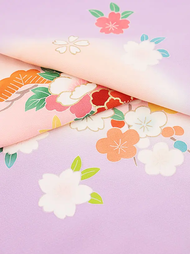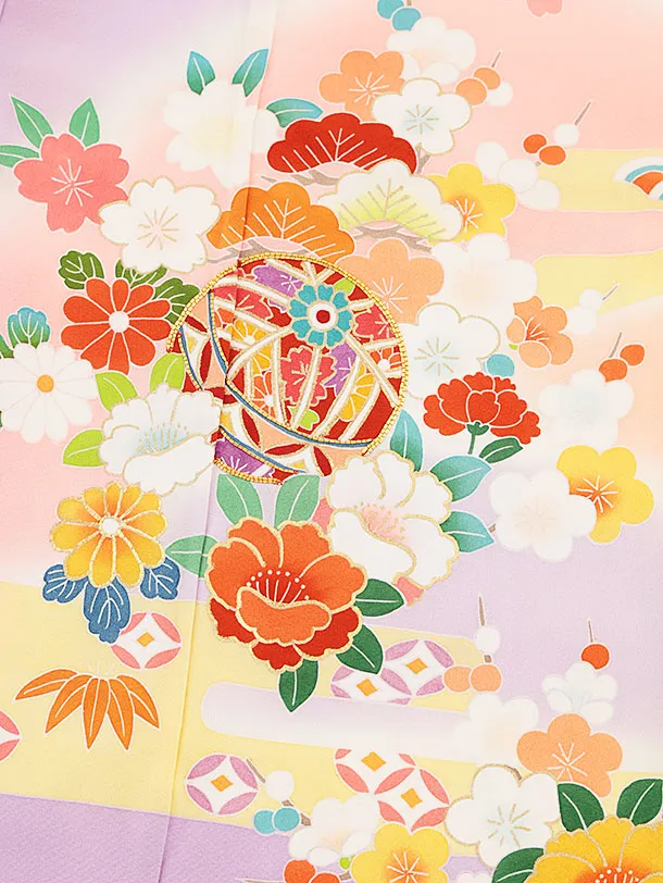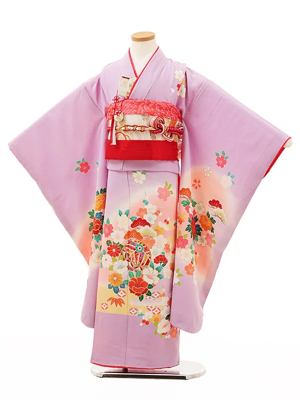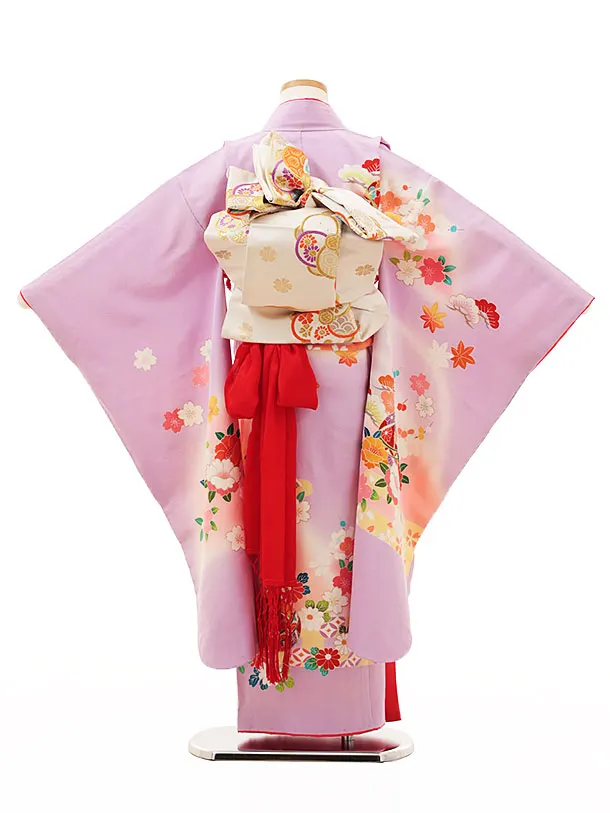 七五三(7歳女の子袋帯)Y190【高級正絹】藤色 まりに花