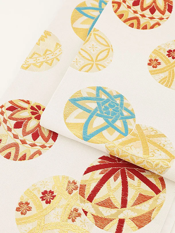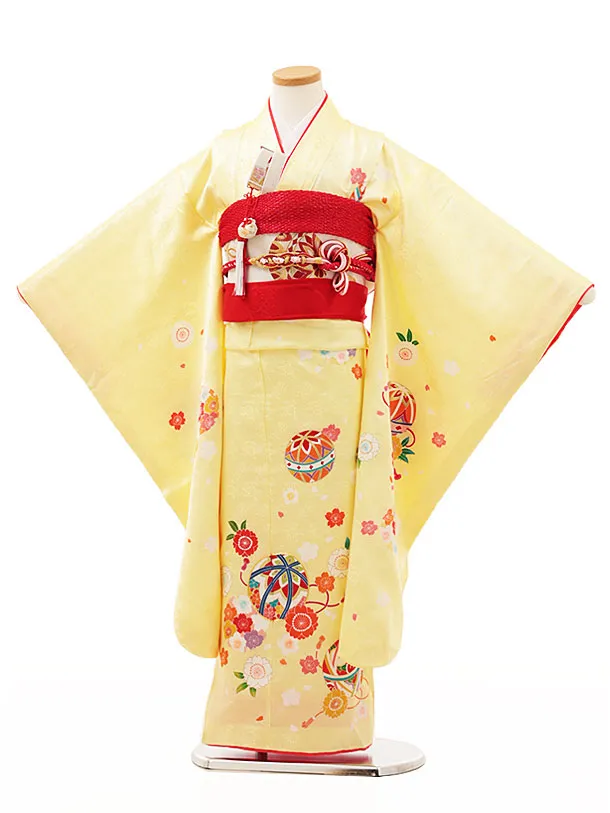 七五三(7歳女の子袋帯)Y192【高級正絹】黄色地 まり花