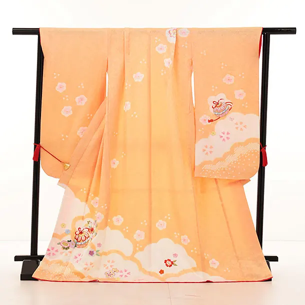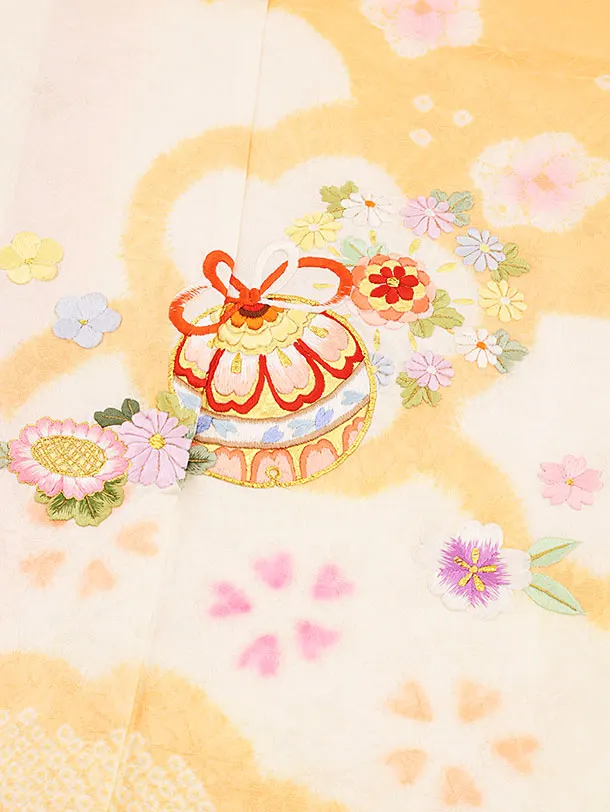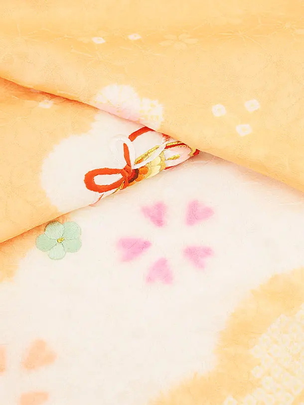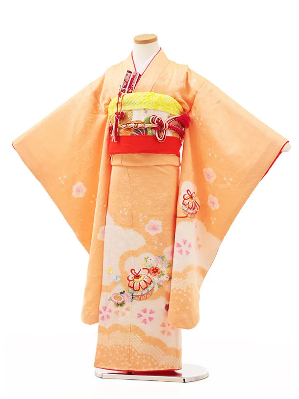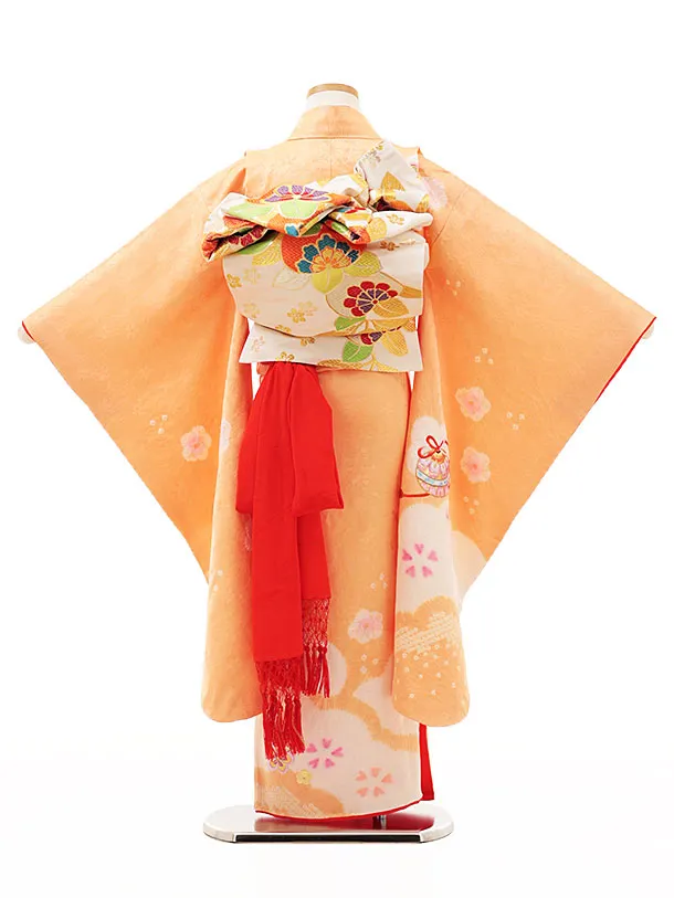 七五三(7歳女の子袋帯)Y193【高級正絹】オレンジ色 刺繍鈴花