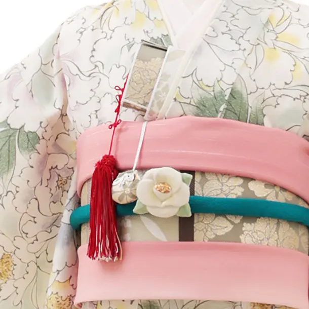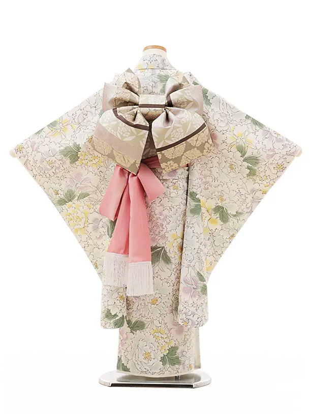 七五三(7歳結び帯)Y195 UNSODO クリーム白 牡丹