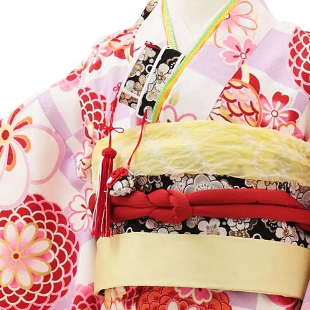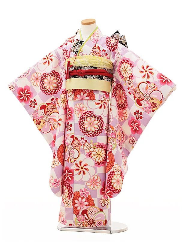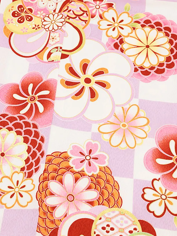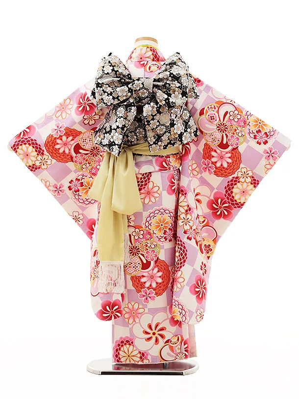 七五三(7歳結び帯)Y196 パープル市松 菊づくし