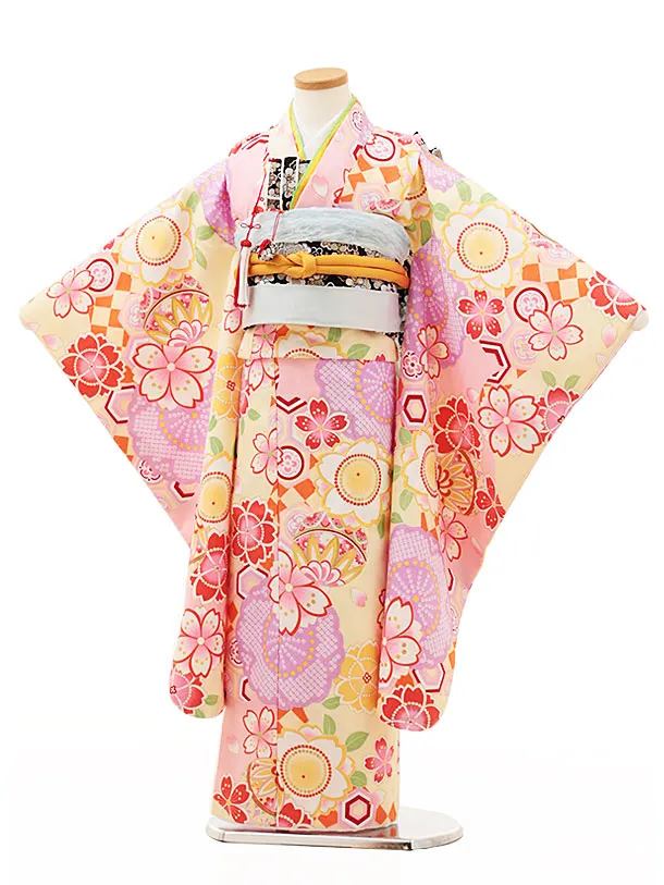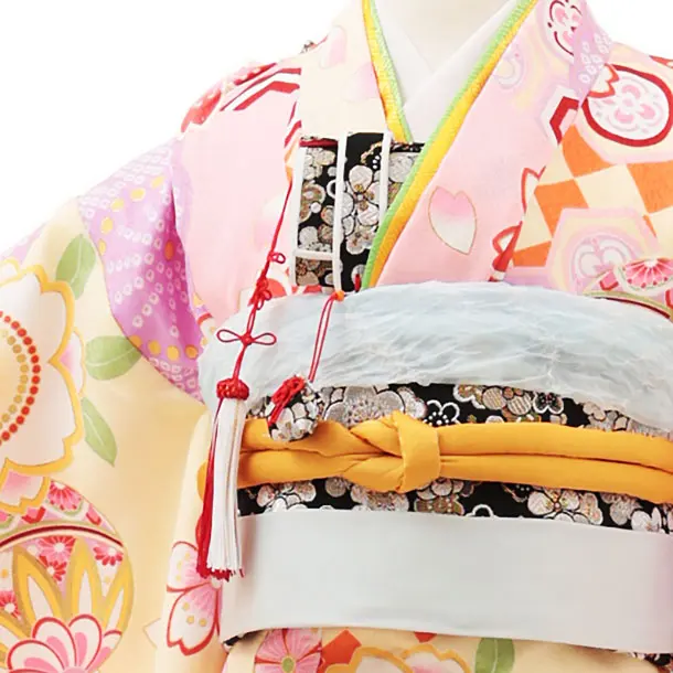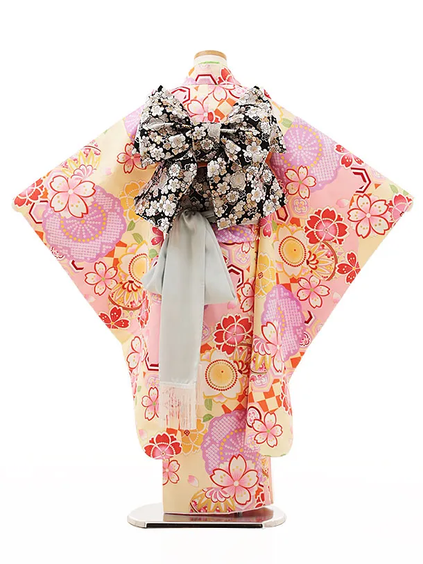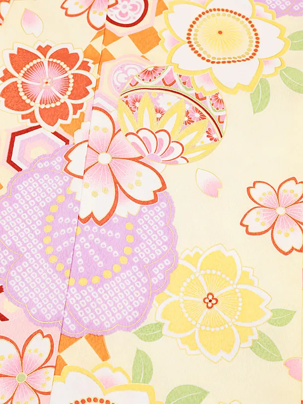 七五三(7歳結び帯)Y197 うす黄色 まり 桜