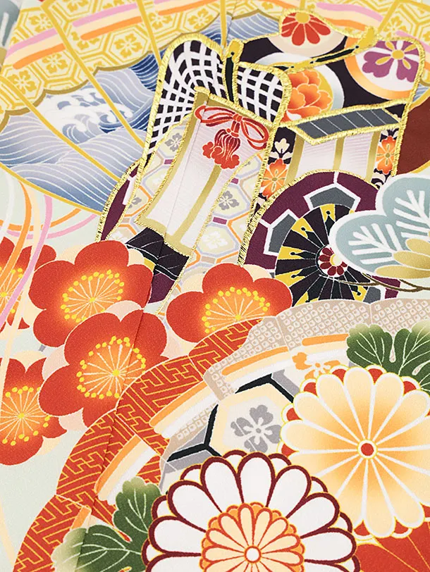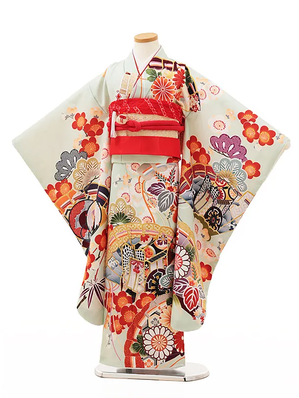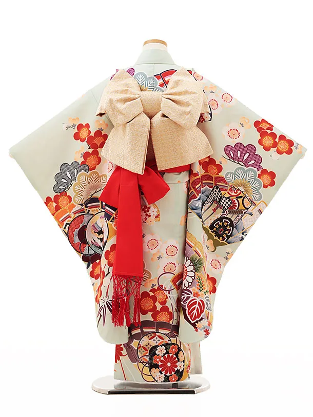七五三(7歳結び帯)Y200 ペールグリーン桧扇に御所車