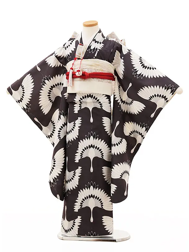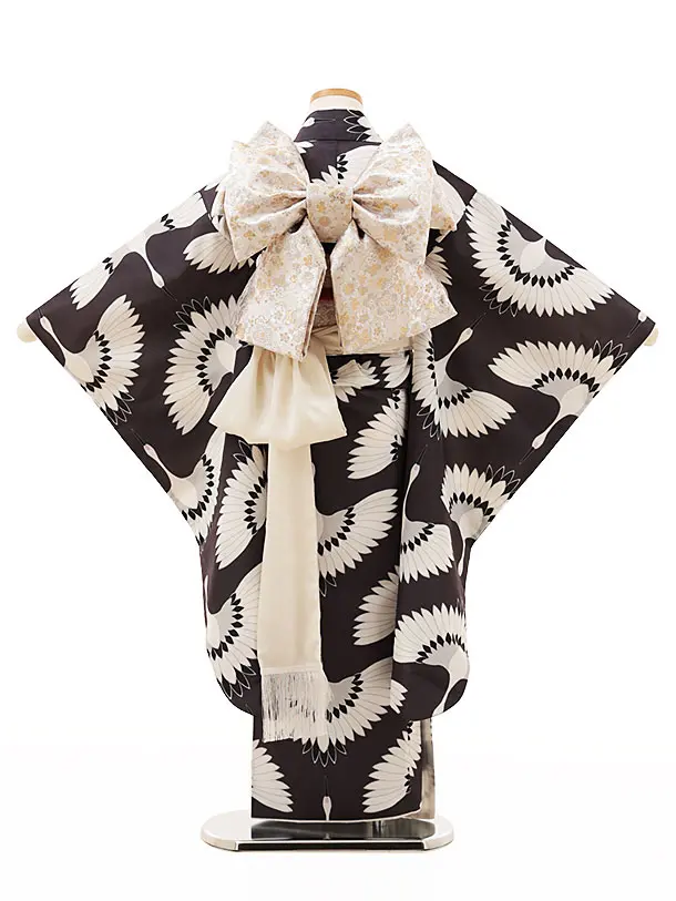 七五三(7歳結び帯)Y206 グレー地 とび鶴