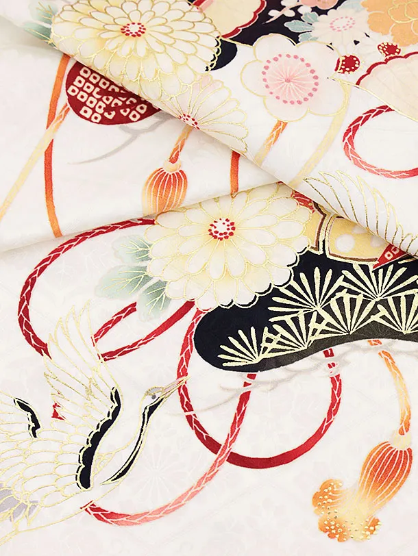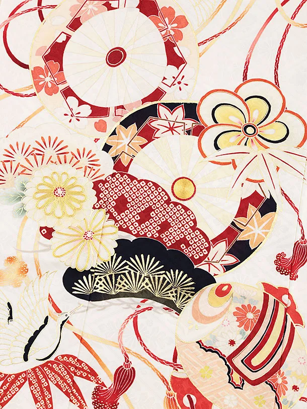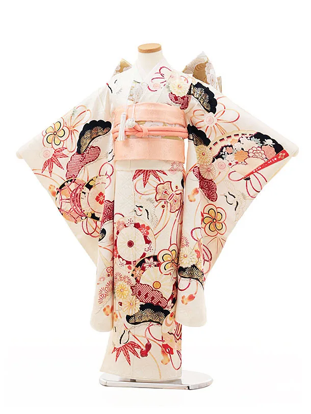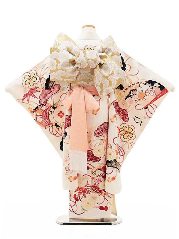 七五三(7歳女児結び帯) 高級正絹Y210 紅一点 クリーム地 吉祥文様
