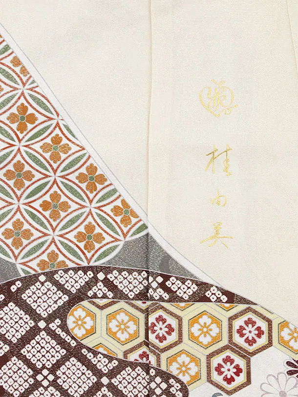 七五三(7歳女の子袋帯)Y216【高級正絹】桂由美 クリーム地金彩 波に花