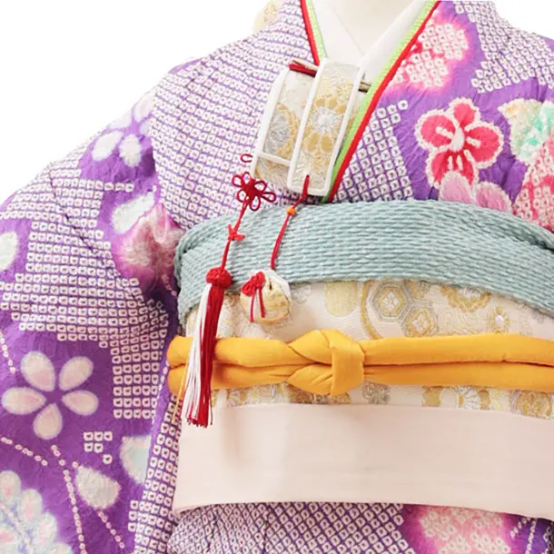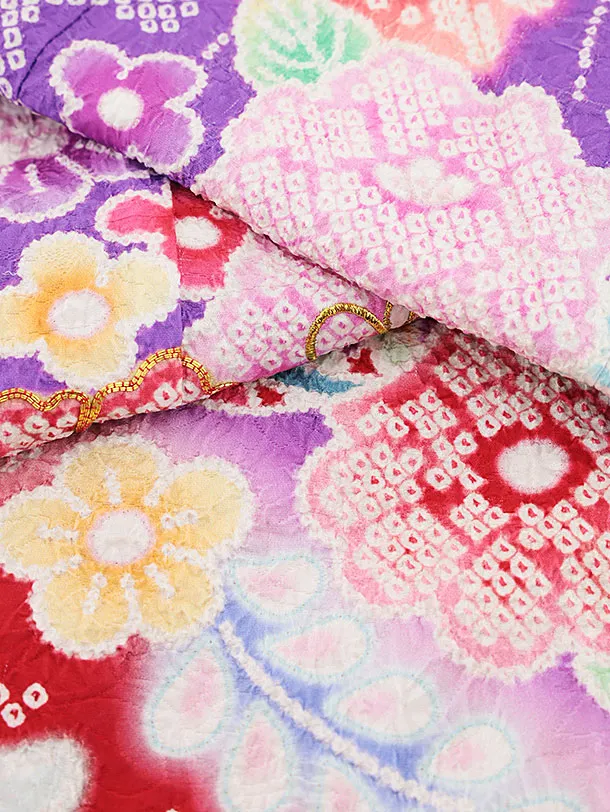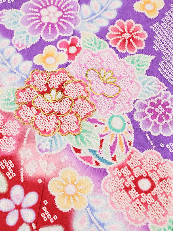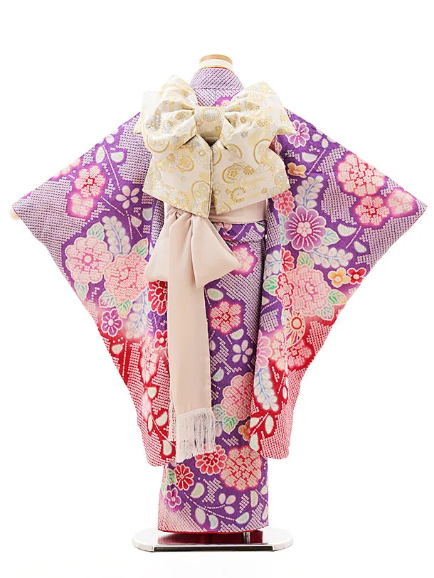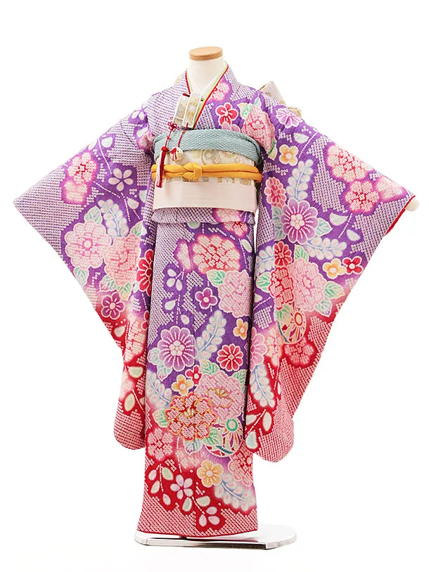 七五三(7歳結び帯)Y218 パープル 裾赤 花