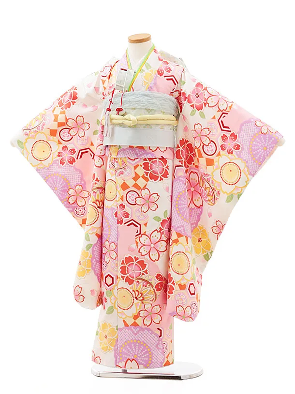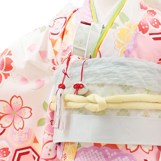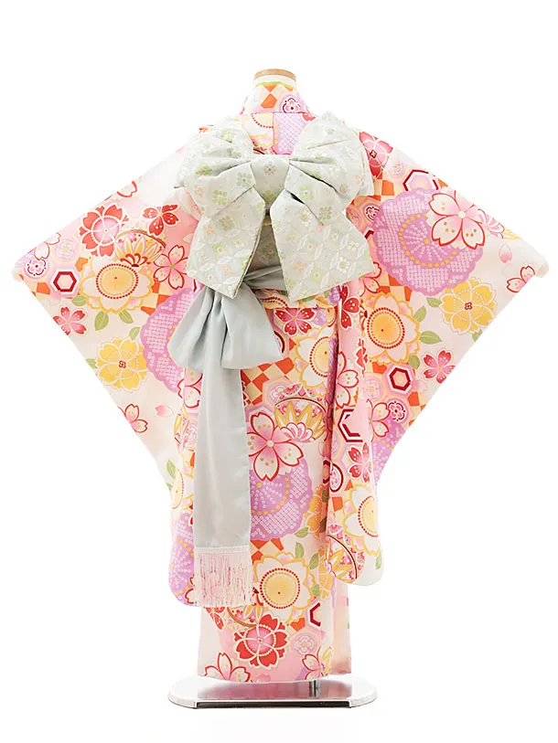 七五三(7歳結び帯)Y219 白ピンク 桜