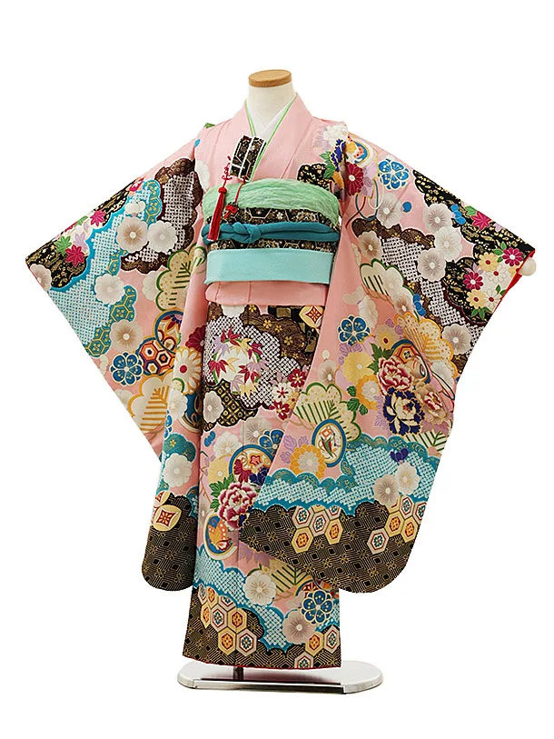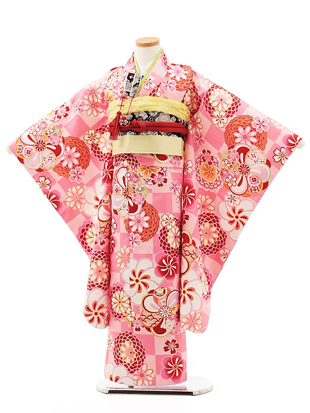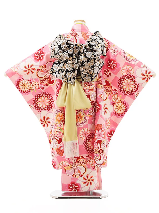 七五三(7歳結び帯)Y220 ピンク市松菊