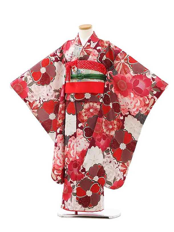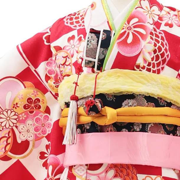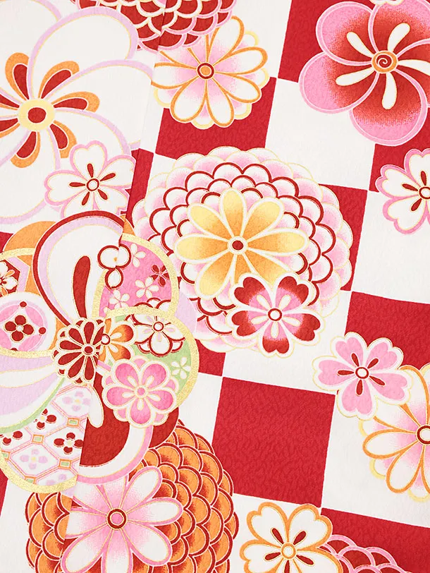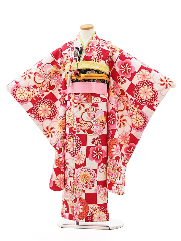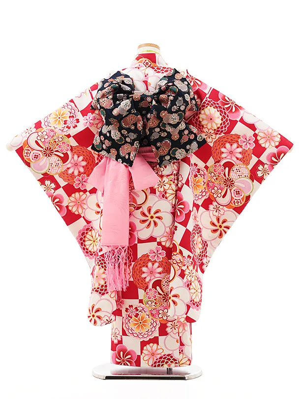 七五三(7歳結び帯)Y221 赤白 市松菊