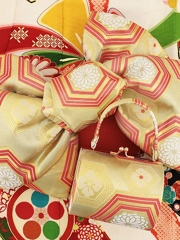 七五三(7歳結び帯)Y224 LOWRYS FARM クリームレトロ熨斗
